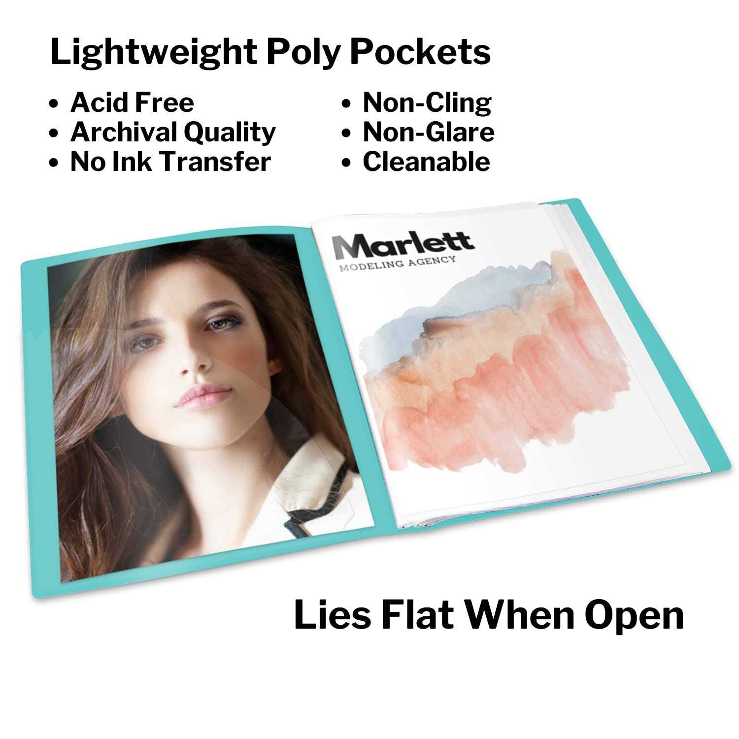 8.5×11 Presentation Book: Folio document organizer with 60 bound (non-refillable) top-loading plastic sleeves. Folder binder to organize, store, present 120 pages of no hole punched projects, reports. Customizable Cover and Spine: Create your own cover page and side label to identify contents and professionally showcase your presentations. Portfolio folder for documents with clear view poly cover. Premium Quality: Lightweight yet durable sheet pockets are non-glare, no transfer, no ink lift-off, moisture resistant, easy to clean. Portfolio presentation book with front inner pocket for papers. Long-Term Protection: Document organizer binder with archival quality plastic sleeves. Acid-free, PVC-free. Preserve your keepsakes with confidence. Each pocket in portfolio binder fits 10 sheets. Many Uses: Document binder, document organizer for diplomas, birth certificates, family tree, photo binder, stencils, art portfolio, awards, modeling portfolio book, art display book, office binder.