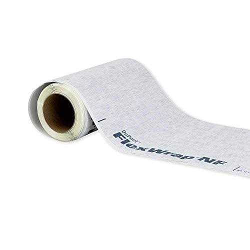 DuPont FlexWrap NF is a premium performance, extendable self adhered flashing material that can be applied over a wide range of building substrates, including non nailable sheathing materials like PSfoam board, fiberboard, concrete masonry unit (CMU), and other such materials. DuPont FlexWrap NF self adhered flashing does not require mechanical fasteners, even in flexed corner areas around building openings. This allows it to provide easy, one-step insulation for hard-to-seal corners around windows and doors. FlexWrap NF is designed to help protect vulnerable corners against air and water intrusion, as part of a complete DuPont Building Envelope Solution. Its effective across a range of window and door designs and a wide range of typical wall substrates. FlexWrap NF integrates easily with all DuPont air and water barriers, to help seal the building envelope for improved durability and energy efficiency. Correctly installed, FlexWrap NF can help stop water from getting at the corners of windows and doors. In turn, that can help prevent water damage, such as wood rot and corrosion,as well as mold. Keeping air and water out can also help maintain insulation R-value, for improved energy efficiency. DuPont FlexWrap NF means “no fasteners.” Instead, DuPont FlexWrap NF is a self adhered, extendable flashing backed with a 100 percent butyl based adhesive layer, making one-step installation and protection possible. And because its an extendible flashing material, DuPont FlexWrap NF can be stretched and wrapped into a rough window opening before the window is installed, or flashed around arched or custom-shaped windows, as well as other wall penetrations. So FlexWrap NF isnt just an effective flashing to seal out water, its also a cost- and time effective material for crews to work with on the job site.