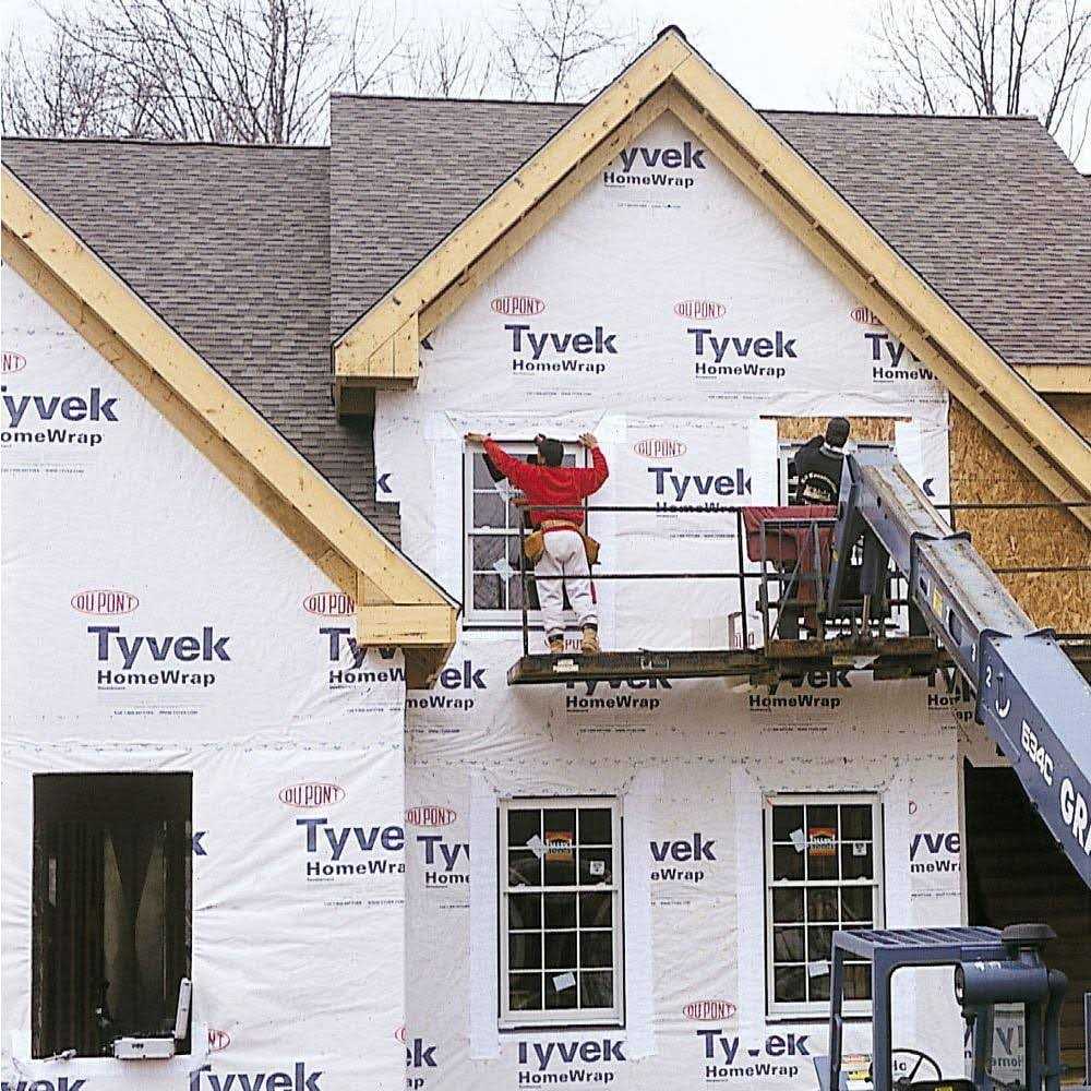 DuPont Tyvek HomeWrap delivers the optimum balance of properties for superior performance against the elements. HouseWrap help prevent outside water from entering the walls and help to seal the home to keep outside air where it belongs. DuPont Tyvek HomeWrap helps reduce homeowner energy bill because homes stay cool in the summer and warm in the winter and dry all year round.