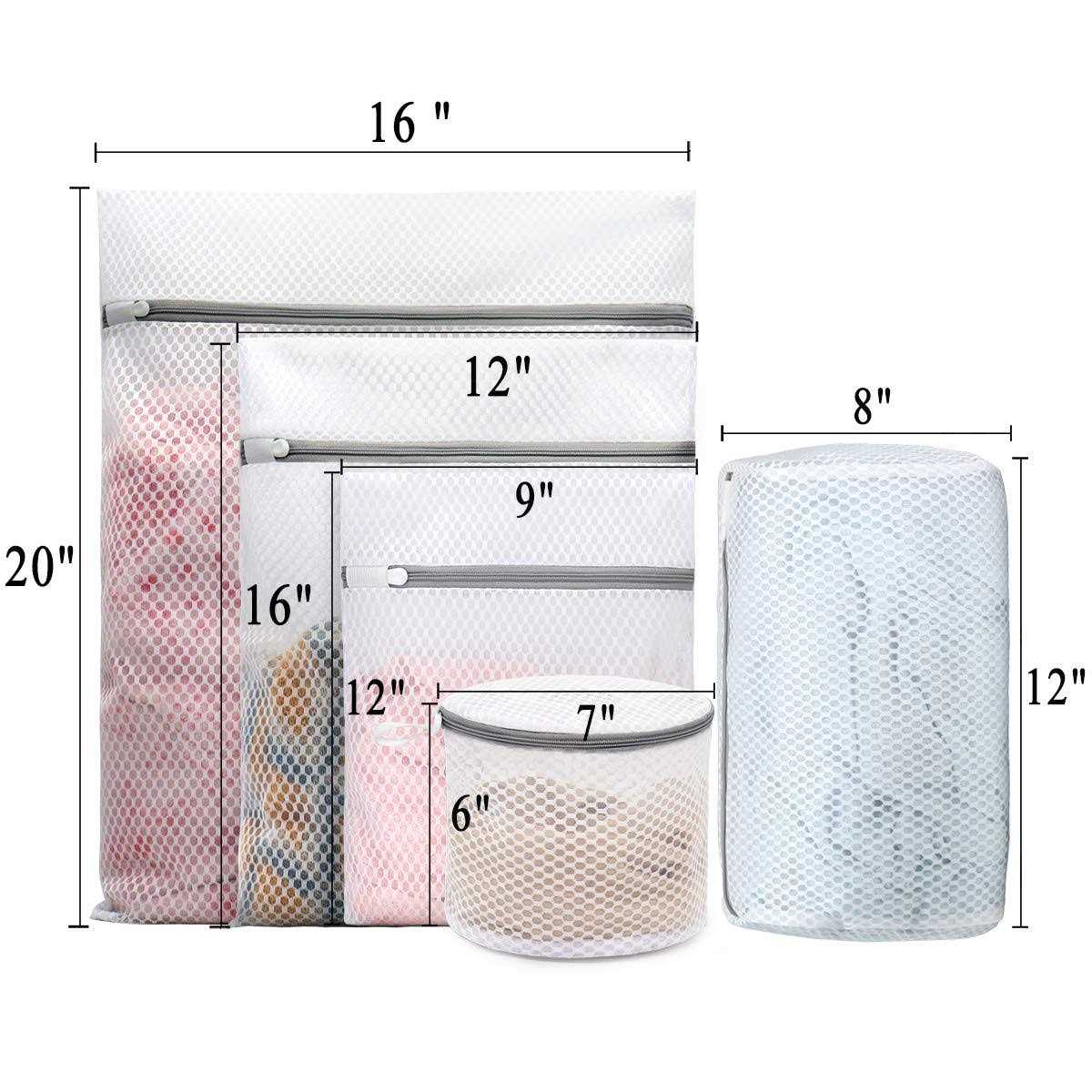 Muchfun 5pcs Durable Honeycomb Mesh Laundry Bags for Delicates (1 Large 16 x 20 Inches, 1 Medium 12 x 16 Inches, 1 Small 9 x 12 Inches, 1 Cylinder 8 x 12