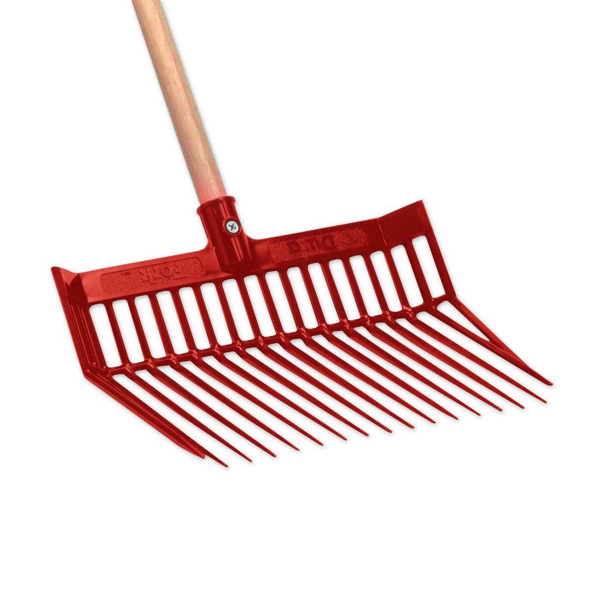 Made from extra strength polycarbonate to provide strength and enhanced flexibility. Uniquely angled tines provide easy pickup with less spilling. Designed for long lasting use around the farm, ranch and home. Features a flatter fork design without the basket that dura pitch has. Head measures 13-1/8l x 15-1/8w.