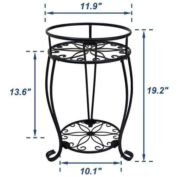This 2 tier plant stand conformation is classic flowers pattern, cute and beatiful flower pot stand is a decoration itself, could blend well with your furniture style, improve the decor of your living room, bedroom, garden, office, balcony and more. You can also put some kitchen or bathroom supplies. Easy to put together. Color: Black.