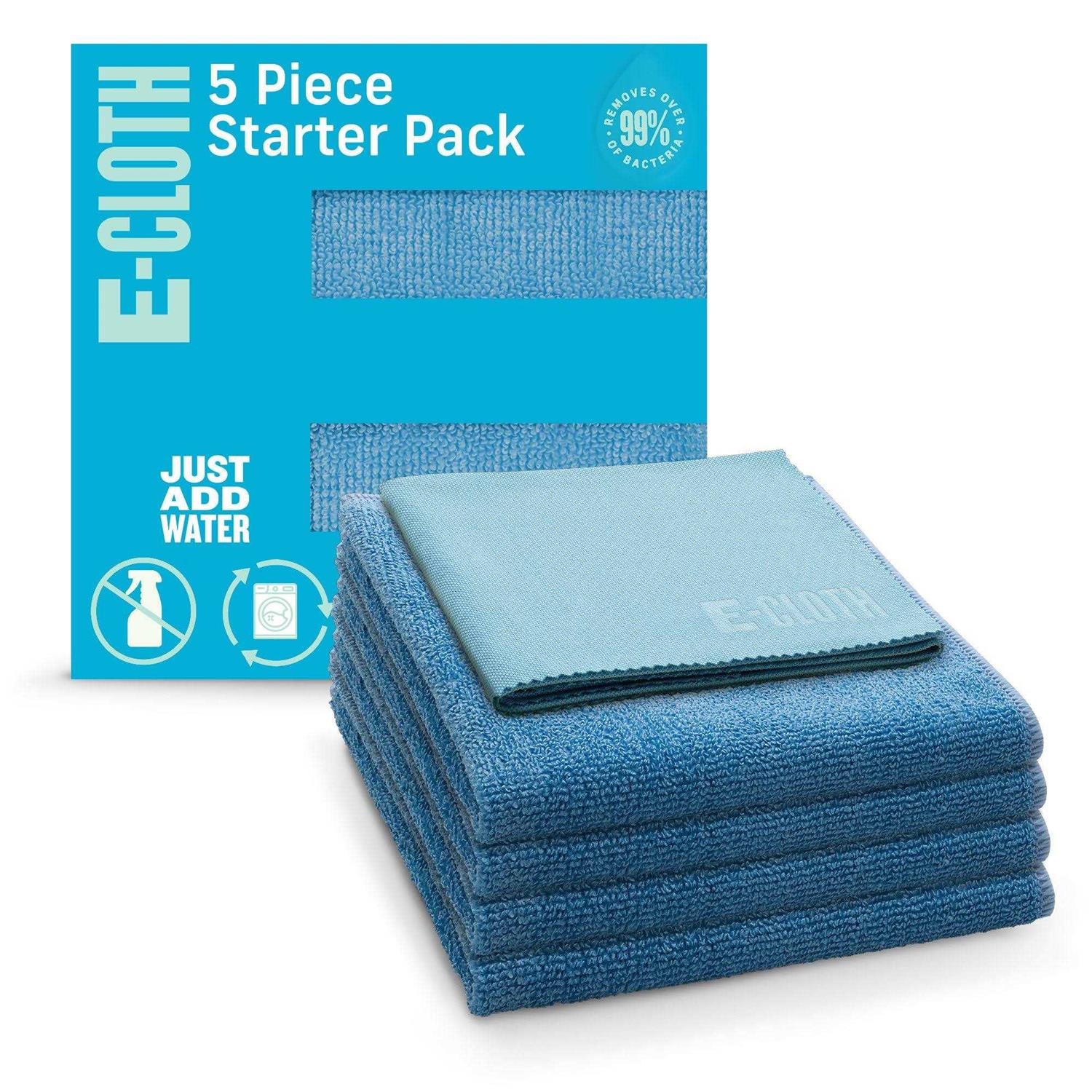 E-Cloth Starter Pack, Microfiber Cleaning Cloths, 5 Cloth Set, Alaskan Blue