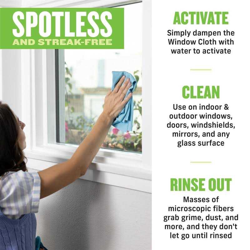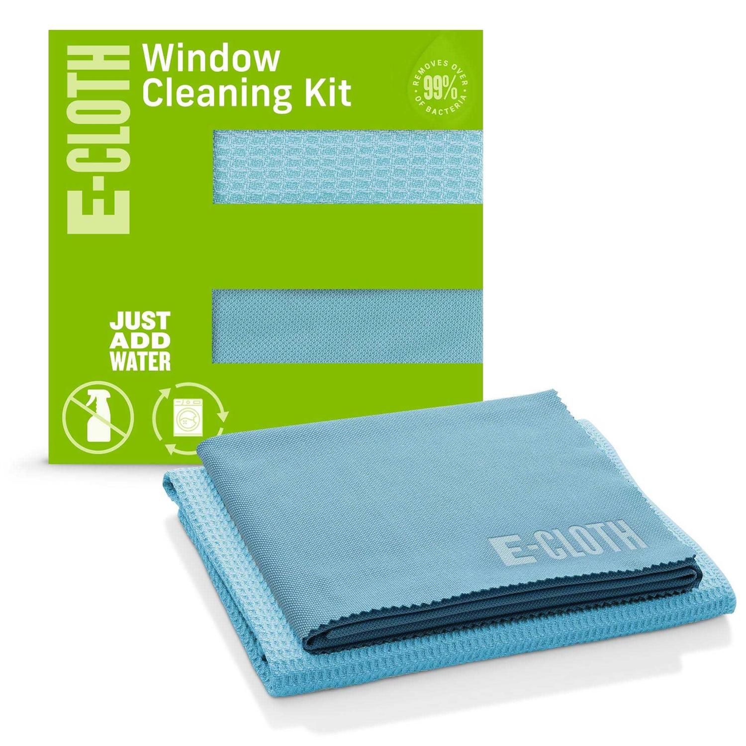 Cleaning with blue mystery sprays and mountains of paper towels makes us uneasy too. Thats why theres the E-Cloth Window Cleaning Pack. Its all you need for sparkling windows and shiny surfaces. Just dampen the Window Cloth and wipe. Then follow with the dry Glass & Polishing Cloth erasing streaks for a perfect finish. Masses of microscopic fibers in the waffle-weave Window Cloth grab grime dust and more from smooth surfaces like windows and mirrors as well as frames and sills and they don’t let go until rinsed. Generously sized the Cloth swiftly handles even large windows with just a quick rinse or two. Next comes the microfiber Glass & Polishing Cloth our secret to a satisfying streak-free finish. Just wipe and admire the results. Made to toss in the laundry instead of a landfill our Window Cleaning Pack is backed by our 3-year or 300-wash guarantee.