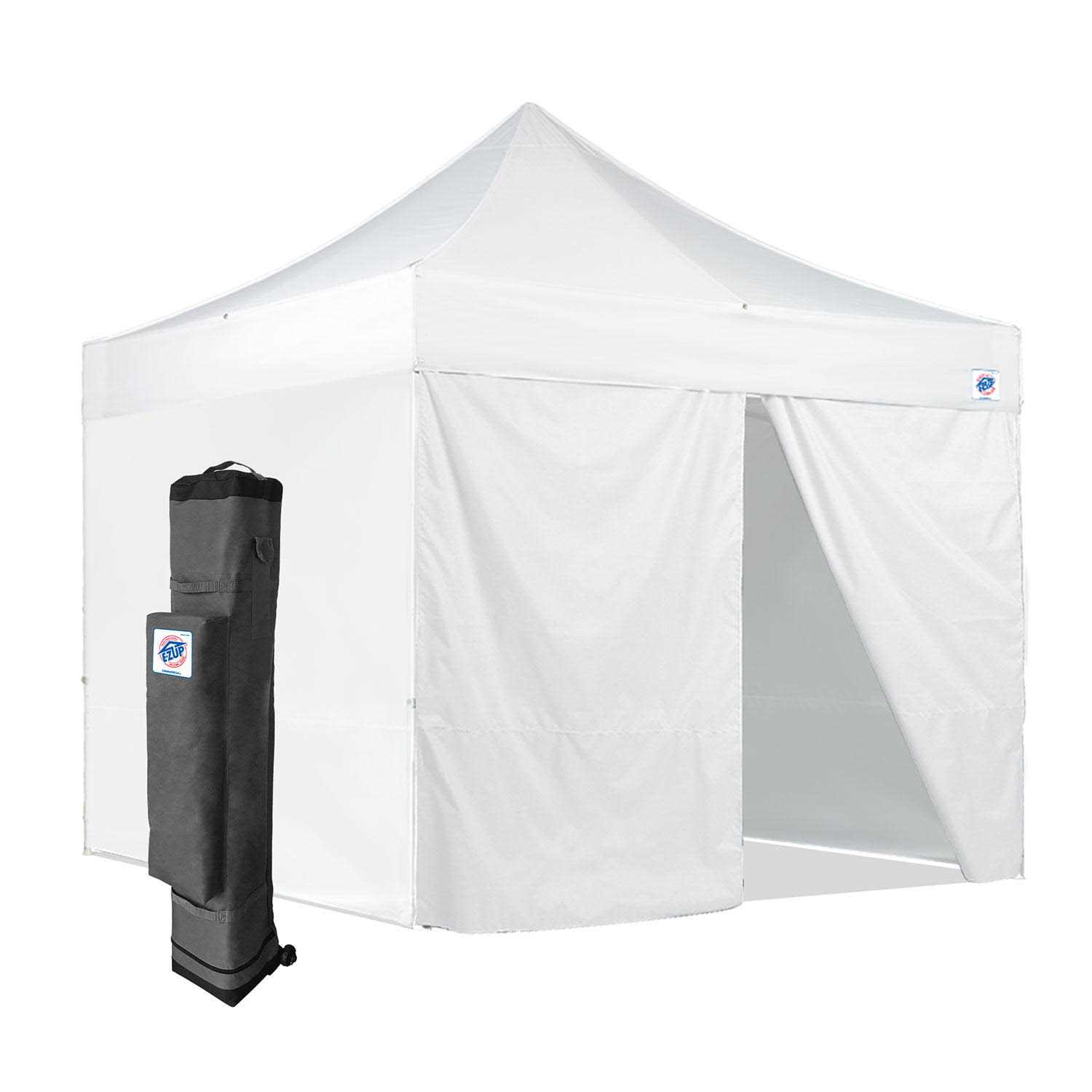 The E-Z UP Commercial Steel Canopy is a completely upgraded package for the small business entrepreneur or a local organization. This canopy features a sturdy steel frame and three full walls. It’s a strong, lightweight, and portable shelter that’s ideal for everyday uses from craft fairs to farmer’s markets. With 100 squares of shade coverage, there is plenty of room to show off your products and wares in style and comfort.