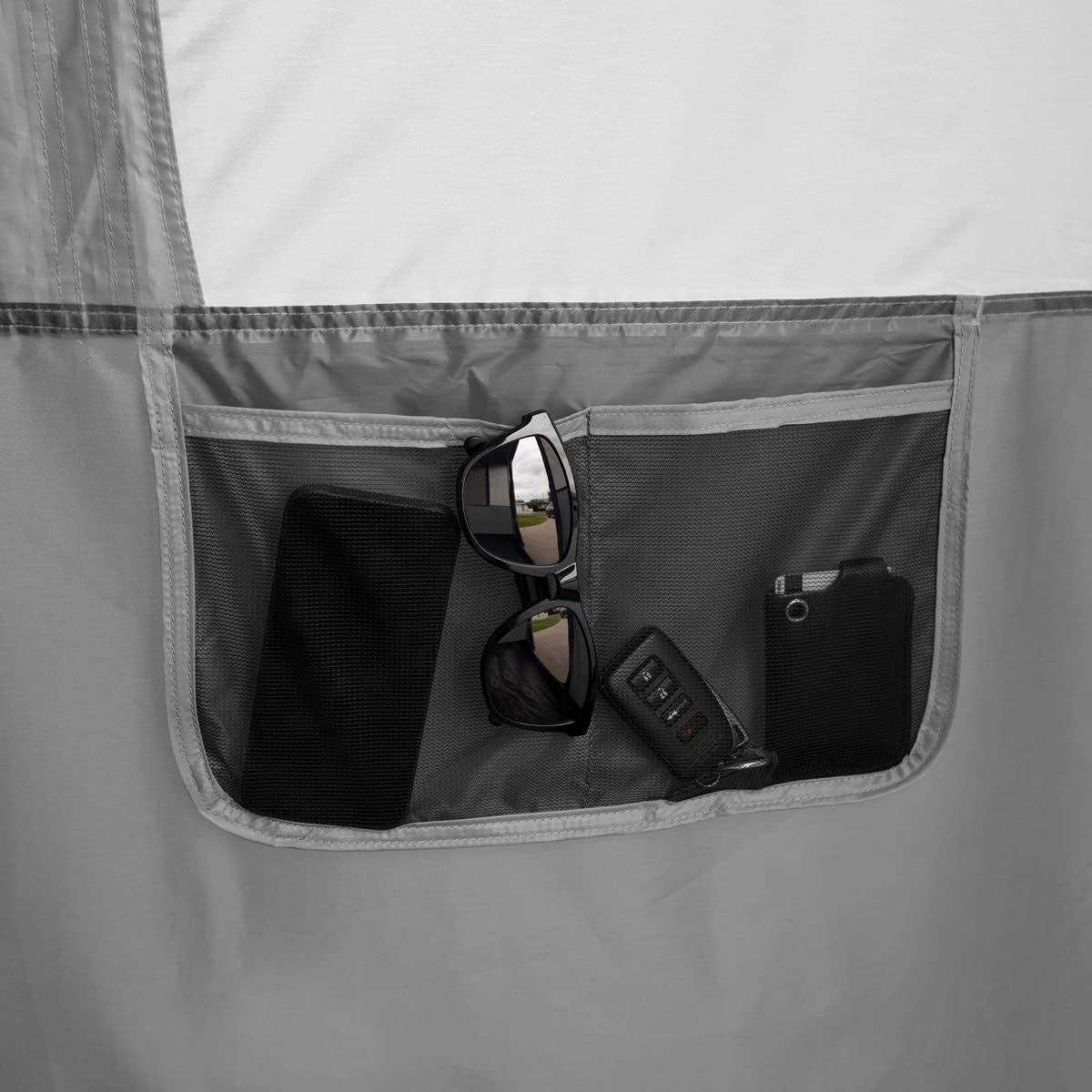 Enhancing add-on – the camping cube pop-up tent add-on is not self-standing. The camping cube is designed to work with an angled leg frame only. Recommended compatible Models: 10′ X 10′ Vista, and 10′ X 10′ Dome Transform – the camping cube add-on works to transform a 10′ x 10′ angled leg Shelter into an entirely new space for any upcoming camping trip. Frame/top (Shelter) not included. Spacious – the camping cube sport add-on accommodates up to 5 People. Highest Height setting is 6’4” (approx. 76”). the camping cube measures 99” L x 99” W x 76” H (350 cm x 251 cm). Blocks sun – the camping cube 5. 4 offers excellent protection from the sun and blocks 99% of harmful UV rays. If you need to stay warm (or need privacy) every window and the door has a heavy-duty polyester flap that closes with an upgraded #10 zippers for a tight seal. No more breakdown headache – With easy to remove hooks & loop attachments The camping cube 5. 4 add-on can be detached in less than a minute. Once detached fold it up and store in the provided add-on gear bag. Once the camping cube is detached you can close and take down your E-Z UP instant Shelter normally.