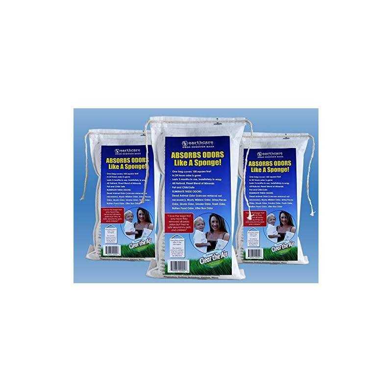 Use the Earth Care Odor Remover Bag to remove dead rodent odors urine and feces odors skunk odors musty mildew odors trash room odors and cigarette smoke. Earth Care Bags do not have to come into contact with the odor causing agent. Simply hang the bag near the source of odor and in 24 hours most odors will be gone or greatly reduced. Earth Care acts like a magnet by attracting and neutralizing smells. It is made from an all natural minerals is non toxic and biodegradable and safe for Planet Earth. It is also safe around children and pets. Earth Care absorbs odors rather than masking them with a fragrance. Disposal is easy and environmentally-friendly: simply add it to soil. One bag covers up to 100 square feet last 3-4 months in use or indefinitely in plastic wrap. Make sure to measure your area and purchase the correct number of bags for maximum effectiveness. The bag comes with a string for hanging. Each bag measures 6 inchx11 inch Weight 19oz.