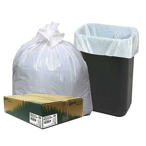 Get rid of trash on your workplace quickly and efficiently with these recycling trash bags. They are manufactured using 75% recycled material including 10% post-consumer content and built to hold up to 13 gallons of waste. Each bag manufactured with star-sealed bottom to prevent leaking. Star-sealed bottom construction distributes weight more evenly and resists leaks. 13 gal. capacity is perfect for the kitchen or small containers throughout the house. Convenient coreless rolls. Made in the USA of US and foreign components. Excellent tear strength, stretch and resistance. Environmentally friendly bags are made of 75% total recycled content, 10% post-consumer content. Ideal for all trash applications. 150 trash bags per box. Environmentally friendly “Green” recycled can liner contains 75% recycled content including 10% post consumer. Earthsense liners are third party certified (SCS) for recycled content and meet EPA CPG for recycled content. Certified to quality for LEED credits.