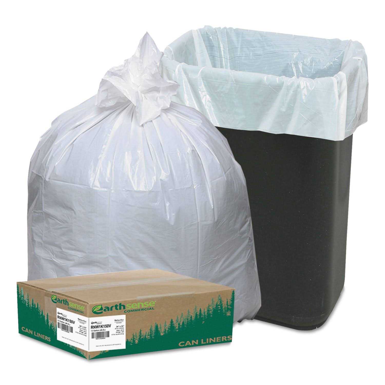 Earthsense Commercial Earthsense RNW1K150V Recycled Tall Kitchen Bags, 13-16gal.8mil, 24 x 33, White, 150 Bags/Box