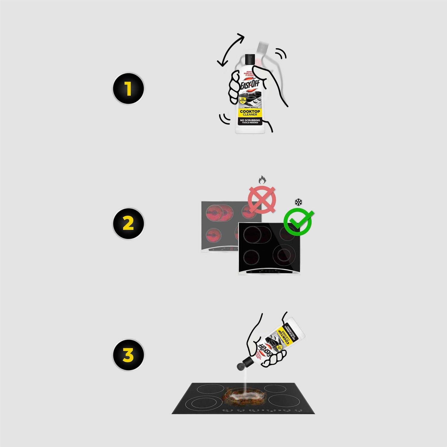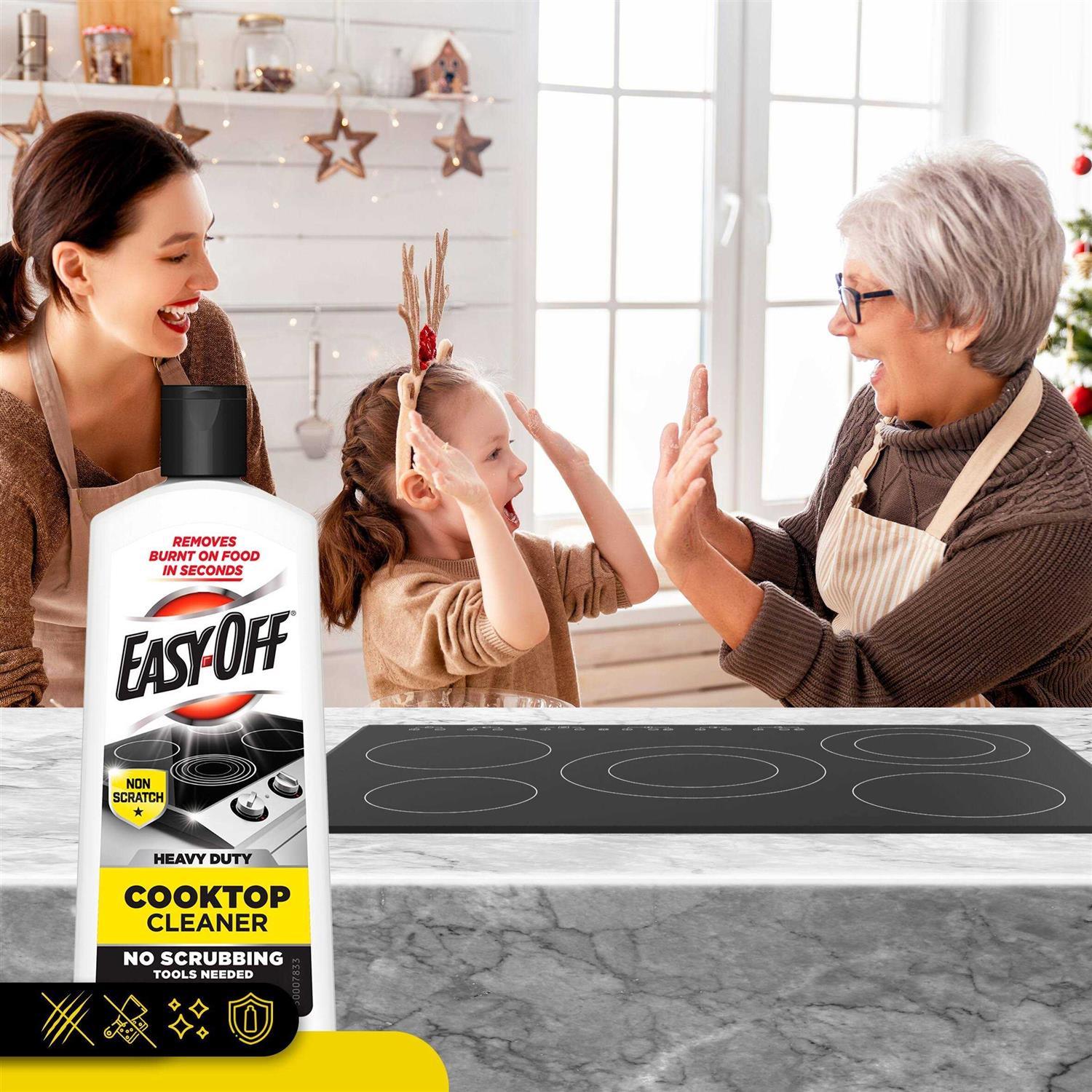 The Easy-Off Heavy Duty Cooktop Cleaner is specially formulated to power through tough burnt on food, grease, and grime in seconds without hard abrasives. Its perfect for stovetops and safe to use on most major appliances. The cooktop polish creates a brilliant shine to cooktop surfaces. The Easy-Off Heavy Duty Cooktop Cleaner has a cooktop grease guard to make for an easier next time clean. The non-scratch formula protects cooktop surfaces, and no scrubbing tools are needed. To use, shake well before use, for glass ceramic cooktops, wait until the surface has cooled down, for stains and spills, apply Easy Off Cooktop Cleaner directly to the surface, clean with a sponge, damp cloth, or paper towel, wipe the cooktop surface until clean, for burnt on stains, leave formula on for 60 seconds before cleaning, to leave a brilliant shine, polish using a damp towel or cloth followed by a clean, dry towel or cloth, for best results, allow to fully air dry. Cook with passion. Clean with Easy-Off! Try the Easy Off Fume Free Oven Cleaner or the Easy Off Heavy Duty Degreaser Cleaner Spray to care for all your difficult to clean surfaces.
