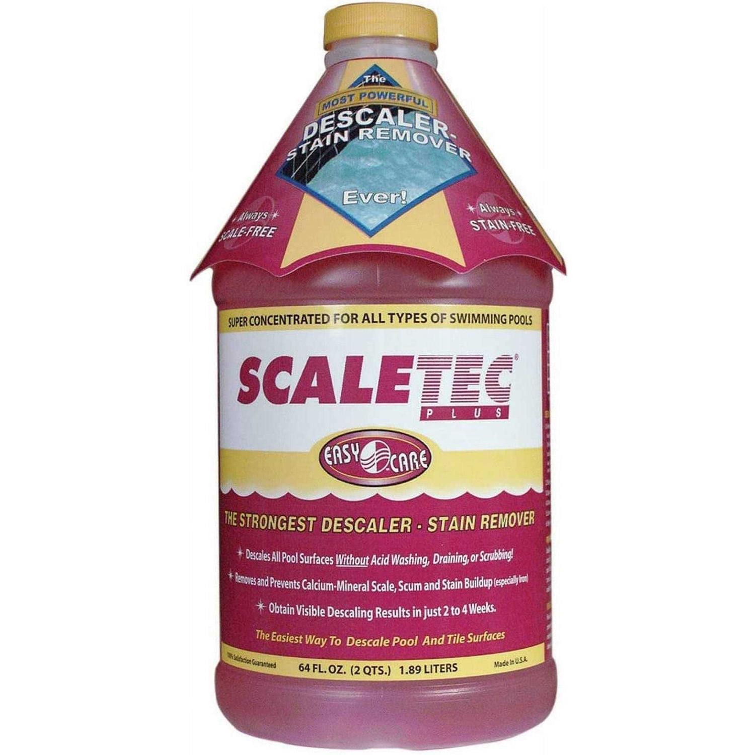High performance swimming pool calcium descaler, iron stain and scum remover and preventative. Scale Tec Plus is the first pourable product that removes hardware buildup throughout pool surfaces, tile and all equipment with ought to scrubbing and acids. Highly effective in preventing iron, copper and manganese stains.