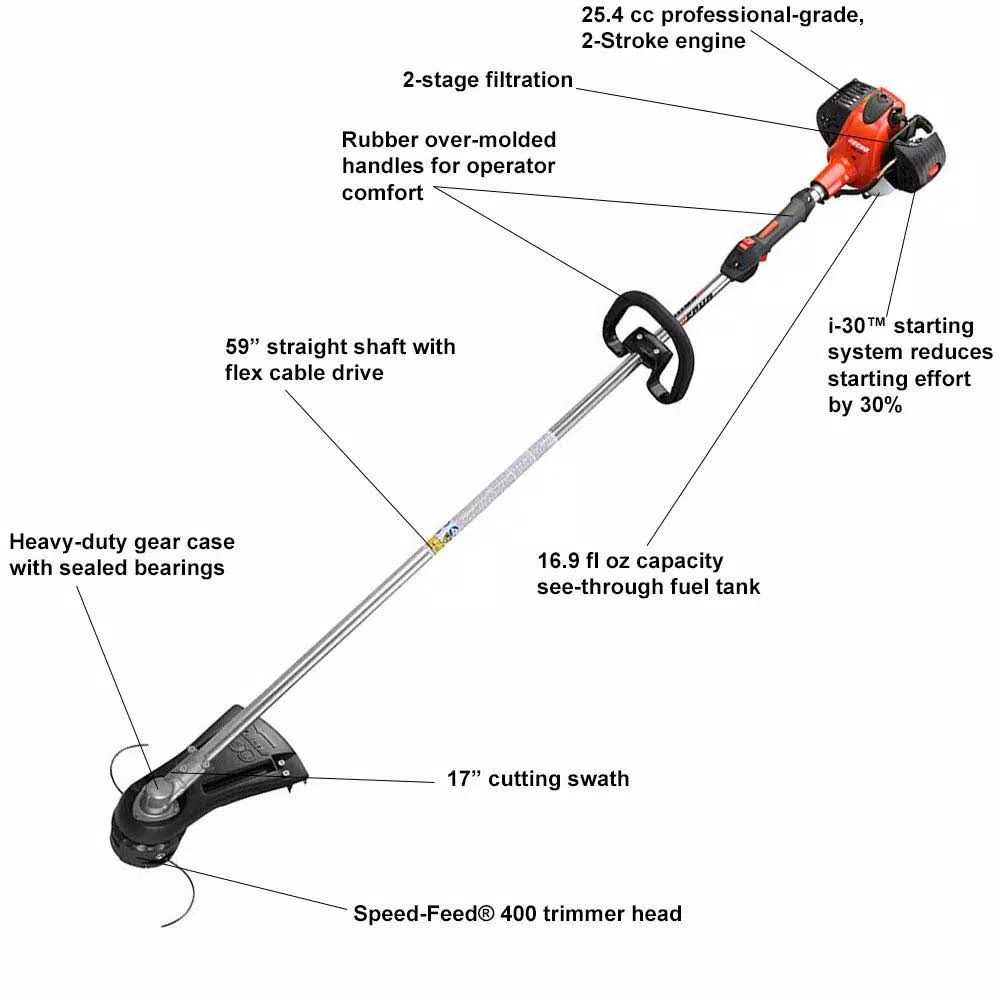 Echo 25.4cc Straight Shaft Trimmer has a strong engine and the handle grips let the user operate it in comfort. i-30 starting system for reduced effort starting. 2-stage commercial-grade air filtration for long engine life. Ergonomic cushioned front and rear handles for increased comfort. Speed-Feed 400 cutting head reloads in seconds without tools or disassembly. Cylinder/piston plating for increased engine life.