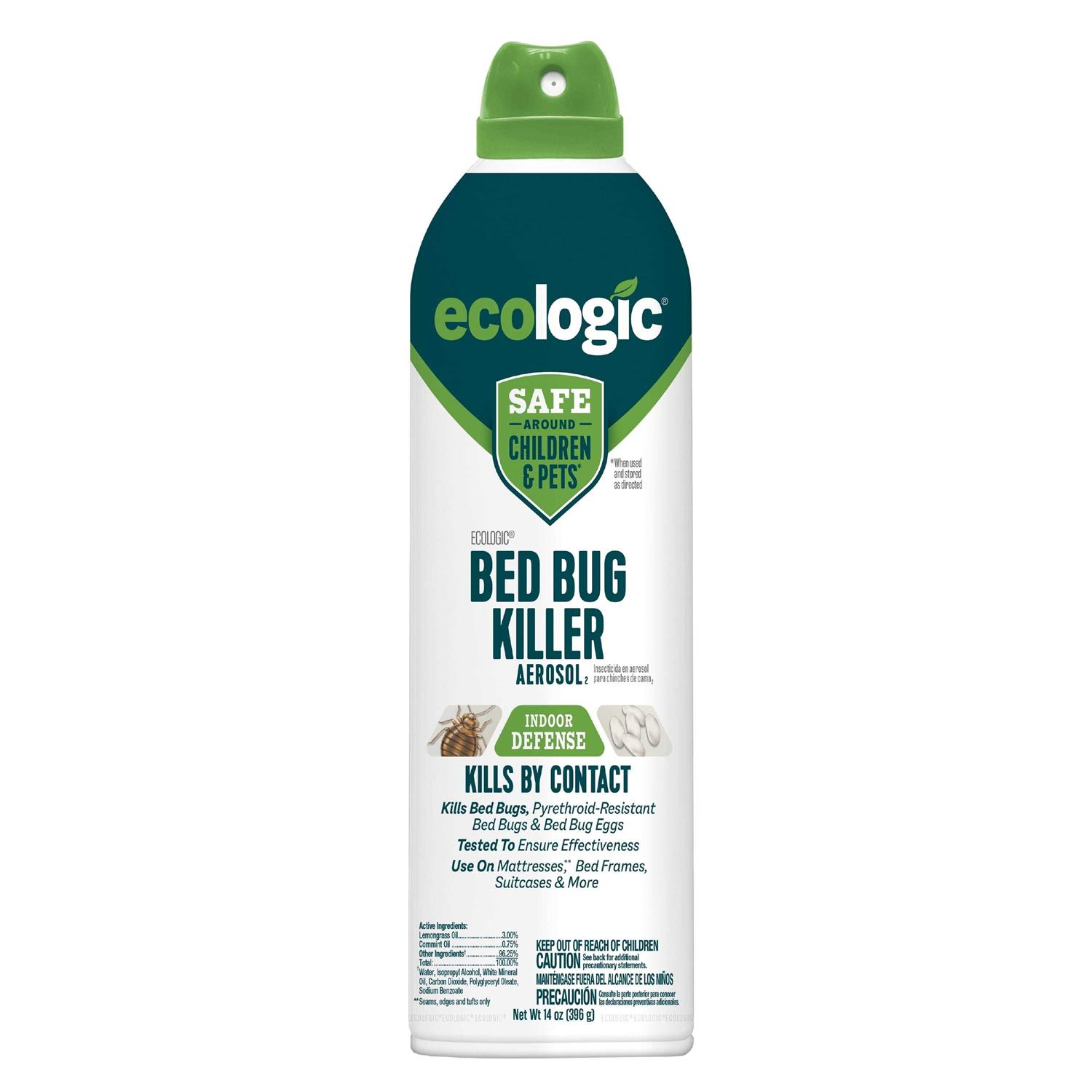 You should know what you’re spraying in your home. With EcoLogic pest control products, what you see is what you get – all ingredients are listed on the label. EcoLogic products deliver alternatives to traditional pesticides that homeowners can feel confident about using. Our formulations are proven effective in the home, lawn and garden and are safe for use around kids and pets, when used and stored as directed.EcoLogic Bed Bug Killer Aerosol2 kills bed bugs, pyrethroid-resistant bed bugs and bed bugs eggs. This product also kills fleas. Apply as a spot treatment to cracks and crevices around baseboards, floorboards, bedboards, carpet edges, furniture and walls; bed frames, mattresses and box springs; corners and pockets of luggage. EcoLogic Bed Bug Killer2 is made with lemongrass oil and cornmint oil and kills by contact. Do not spray humans or pets with this product. Do not apply this product to stuffed animals or toys. Always test an inconspicuous sample of fabric, rug, flooring or painted/stained surfaces for discoloration before use.