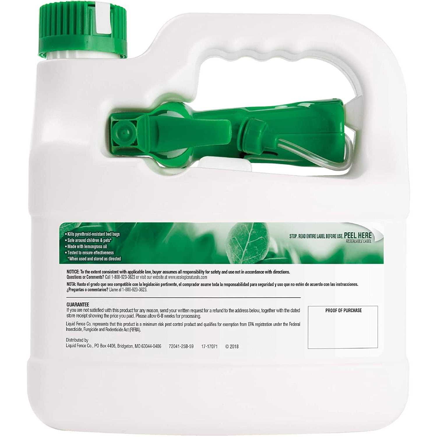 You should know what you’re spraying in your home. With EcoLogic pest control products, what you see is what you get – all ingredients are listed on the label. EcoLogic products deliver alternatives to traditional pesticides that homeowners can feel confident about using. Our formulations are proven effective in the home, lawn and garden and are safe for use around kids and pets, when used and stored as directed.EcoLogic Bed Bug Killer2 kills pyrethroid-resistant bed bugs and bed bugs eggs. This product also kills fleas. Apply as a spot treatment to cracks and crevices around baseboards, floorboards, bedboards, carpet edges, furniture and walls; bed frames, mattresses and box springs; corners and pockets of luggage. EcoLogic Bed Bug Killer2 is made with lemongrass oil and cornmint oil and kills by contact. Do not spray humans or pets with this product. Do not apply this product to stuffed animals or toys. Always test an inconspicuous sample of fabric, rug, flooring or painted/stained surfaces for discoloration before use.