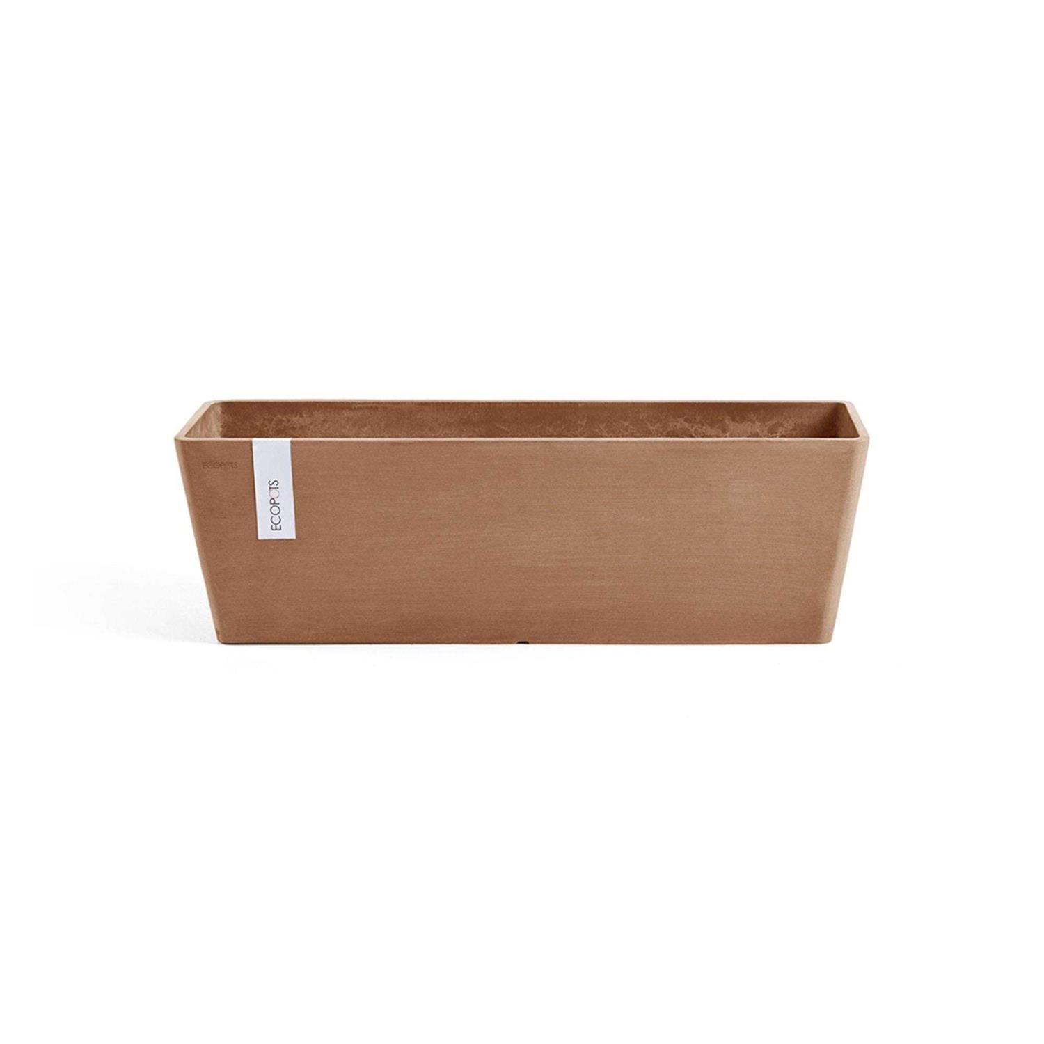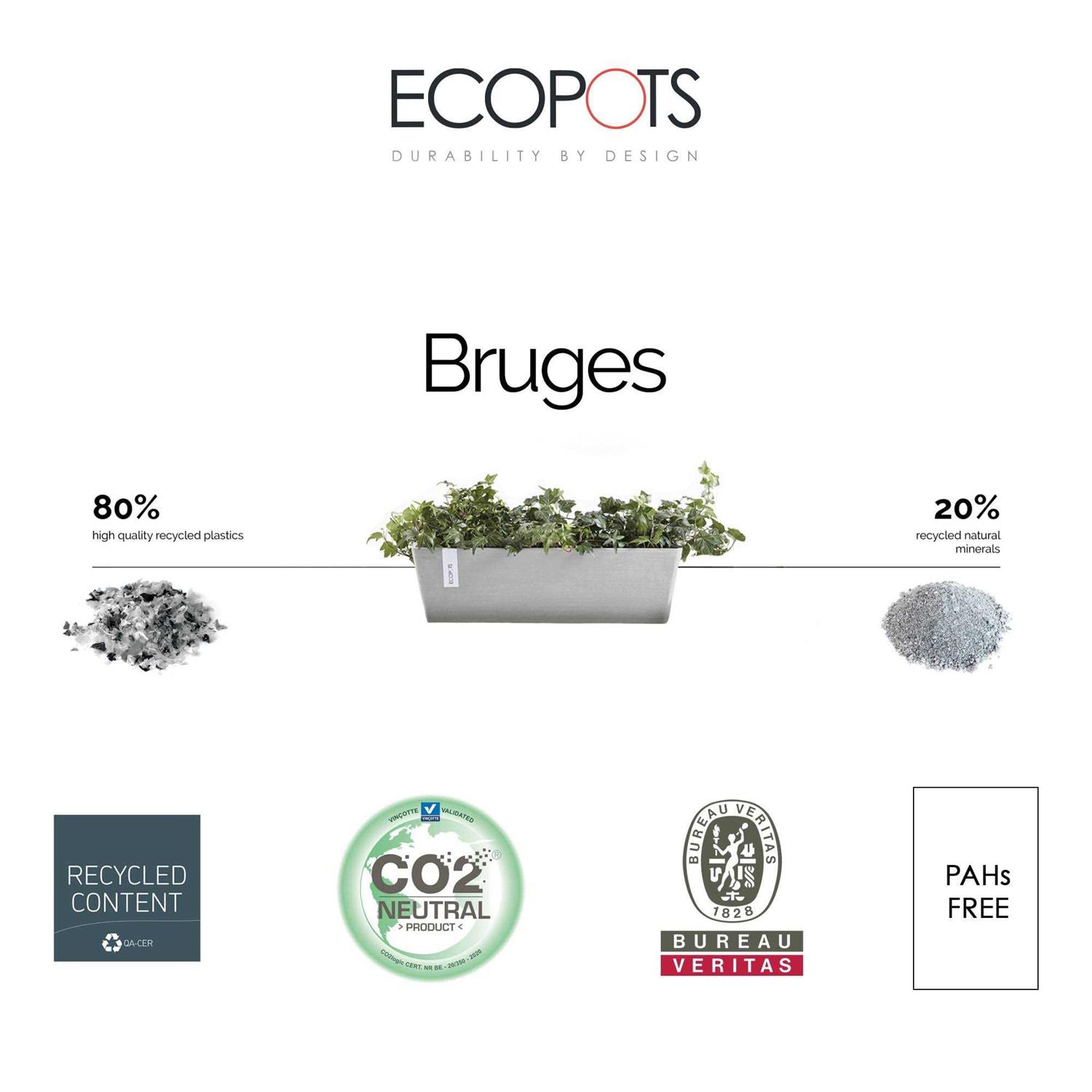 Complete your garden decor with responsibly made, high-quality Ecopots! Key Product Features Measures approximately 31.49 inch L x 7.8 inch W x 7.8 inch H Has drainage hole and plug to help root aeration, and allow excess water to escape Pairs with the 31.5 inch Ecopots rectangular saucer (sold seperately) Ideal for outdoor or indoor use anytime during the year All Ecopots are made from a unique formula containing 80% high quality, first use, recycled plastics of which 50 percent PP and 50 percent PE, and 20 percent recycled natural minerals to improve durability, UV resistance and insulation The Ecopots Bruges is a series of rectangular planters for small plants and herbs. The rectangular design of the planter makes it wonderful for display in front of windows or hung from a railing. With a beautiful hand-made finish and tasteful coloration, you garden decor is sure to be taken up a notch with the addition of these beautiful, one-of-a-kind planters.