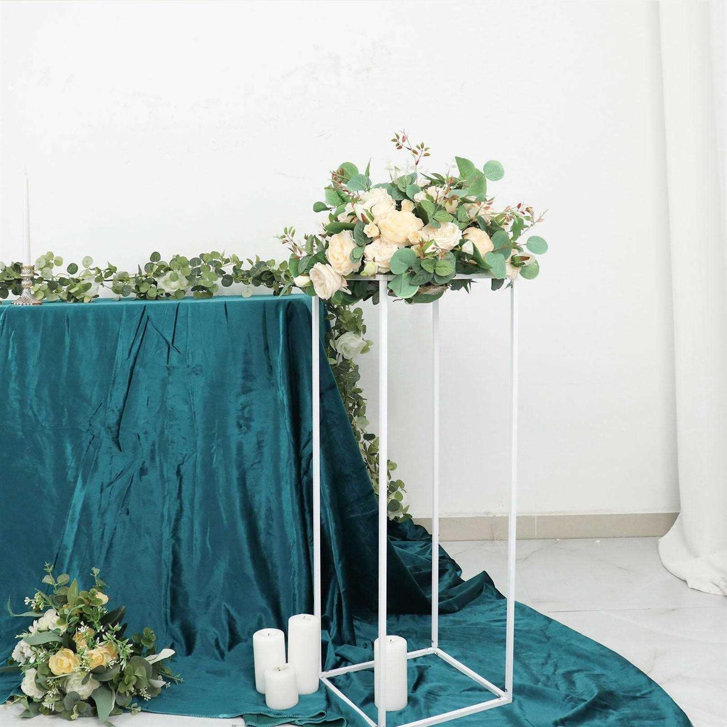 Efavormart 2 Pack | 32 inch Glossy White Metal Wedding Flower Stand, Geometric Vase Column Centerpiece