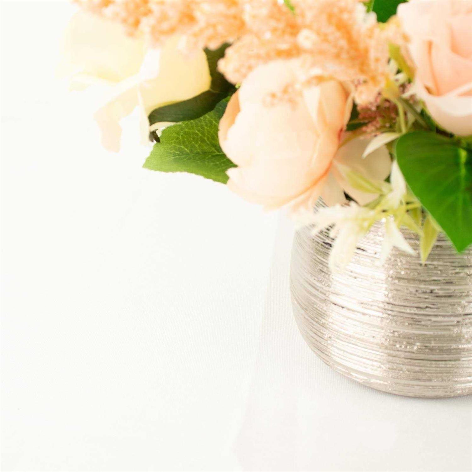 Silver Ceramic Flower Pots Looking for a chic way to display your flowers and plants? Look no further than our Ceramic Flower Pots! These pots are constructed from high-quality ceramic and feature a beautiful round shape with a metallic silver finish. They’re also durably built to last, making them a great investment for your home, office, or event design. Succulent Planters Give your plants a home that’s just as chic as you are with these round ceramic pots. Perfect for turning any table into a centerpiece, these pots have a scratched texture that adds a touch of sophistication. Best of all, they have three rubber pegs on the bottom to prevent them from slipping, so you can rest assured that your plants or decorations will be safe and sound. Additional Information: Pots do not have holes at the bottom Order is for Pots Only. Plants and other decorations are not included. Decorate with short fresh flowers and succulents. Uses: Ideal Gift on some special occasions like Birthday, Christmas, Thanksgiving or Housewarming. They can also be used as handy storage containers for pens, pencils or other small tools.