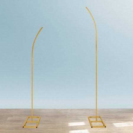 Gold Metal Curved Top Wedding Arch Create the perfect backdrop for your wedding day with this stunning Curved Top Gold Metal Frame Wedding Arch. Its sturdy metal construction and luxurious metallic gold finish will add a touch of elegance to any celebration. It comes as a set of one small and one large stand, making it exceptionally versatile; the two stands can be used together or independently depending on the desired effect. Floral Display Frame Whether youre looking to create a sophisticated flower stand or an eye-catching balloon arch, this frame is sure to bring some glamour to your event. The lightweight yet robust design ensures that it’s suitable for use as a backdrop stand, balloon frame or floral frame. With its chic golden hue, this Curved Top Gold Metal Frame Wedding Arch set is the perfect solution for creating memorable memories filled with beauty and sophistication. Backdrop Frame Discover irresistible elegance and grandeur with our Curved Top Gold Metal Frame Wedding Arch. Constructed with a tough and sturdy metal construction, this decor comes in a gleaming metallic gold finish to add a sophisticated look to any backdrop. These stands are perfect for creating an ambient flower stand, a beautiful balloon arch or frame, or can be simply used as backdrop stands. With their adaptability and glamorous gold finish, these pieces will captivate your guests at any event! Get ready to be swept away by this dazzling Curved Top Gold Metal Frame wedding arch set you wont regret it! Additional Information: Screws are already attached to the stands Order is for Wedding Arches only. Flowers and other accessories are not included. Uses: Wedding Decoration, Ceremony, Party Decor, Baby Shower, Shopping Mall, Stores, Home Decor