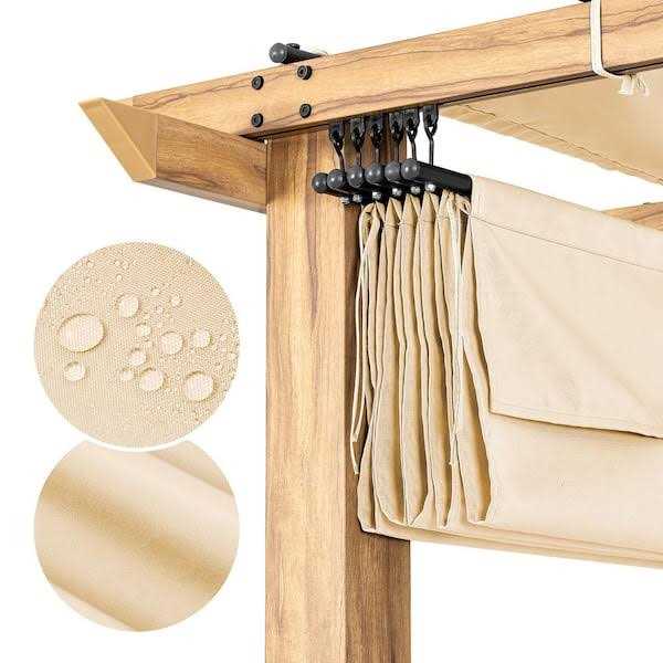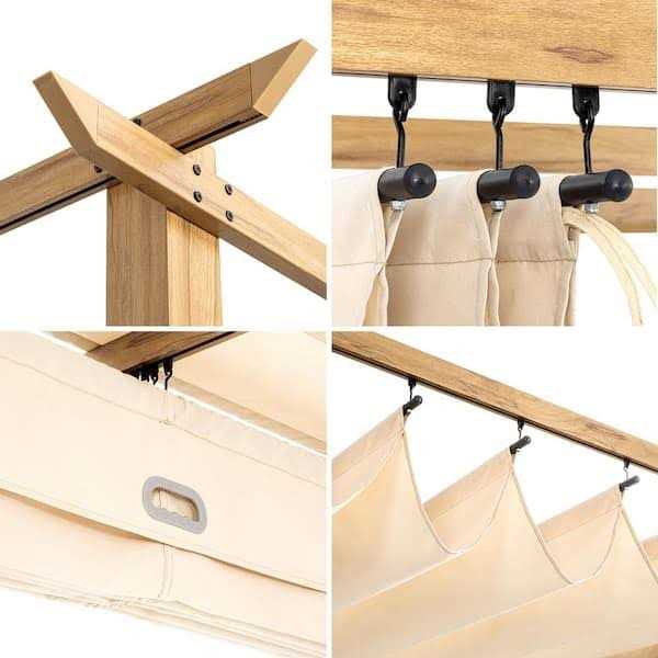 EGEIROSLIFE 10 ft. x 10 ft. Wood Grain Aluminum Outdoor Pergola with Beige Retractable Shade Canopy