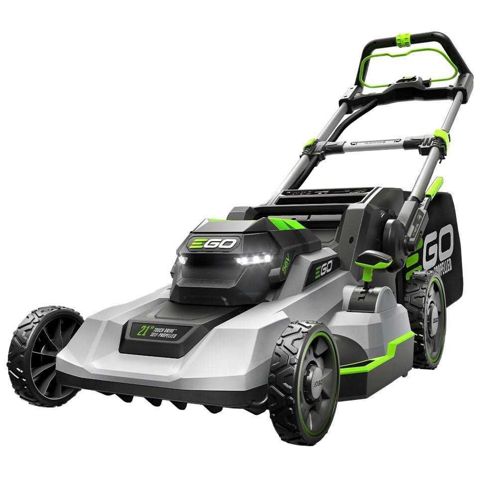 The EGO POWER+ 21” Self-Propelled Mower with Touch Drive delivers 6.0 foot-pounds of cutting torque—power that exceeds gas without the noise, fuss, or fumes. Touch Drive technology puts complete control of the self-propelled system in the palm of your hands by using pressure to engage the system. Easily control the variable speed with a dial positioned at your fingertips for safe and convenient operation. This cordless lawn mower delivers up to 60 minutes of run time on a single charge with the recommended 56V 7.5Ah ARC Lithium battery (available separately). The electric lawn mower delivers precision cutting with its advanced mulching blade and seven cutting height positions from 1.25 to 4 inches, adjustable with one hand. Three-in-one functionality delivers your choice of mulching, side discharge, or bagging your grass clippings; an easy-access two-bushel grass collection bag is included. This self-propelled lawn mower includes bright LED lights for added visibility when mowing at dawn or dusk, and it folds flat for compact storage between cuts. Experience Power Beyond Belief with the EGO POWER+ 21” Self-Propelled Lawn Mower with Touch Drive .