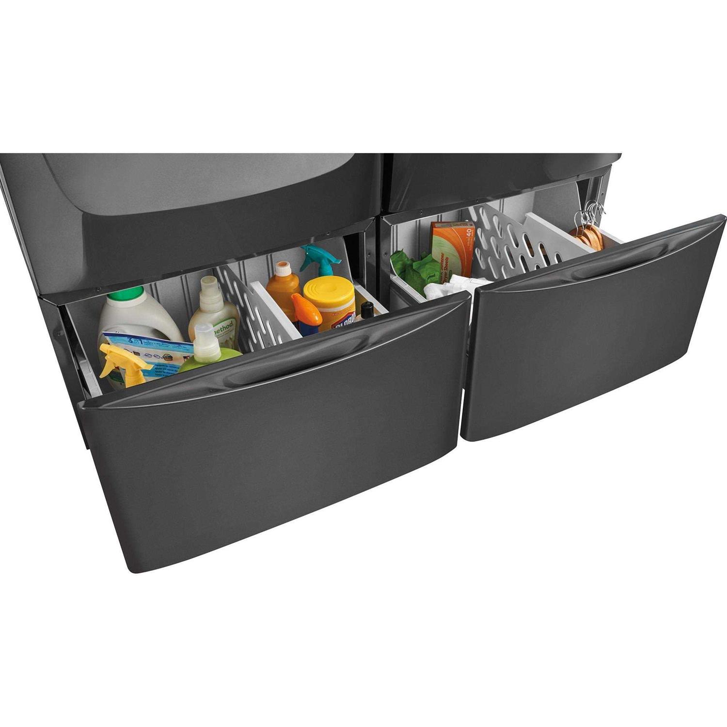 • Keeps laundry products out of sight Storage Drawer helps you organize and for store laundry supplies, extra towels, cleaning supplies and more
