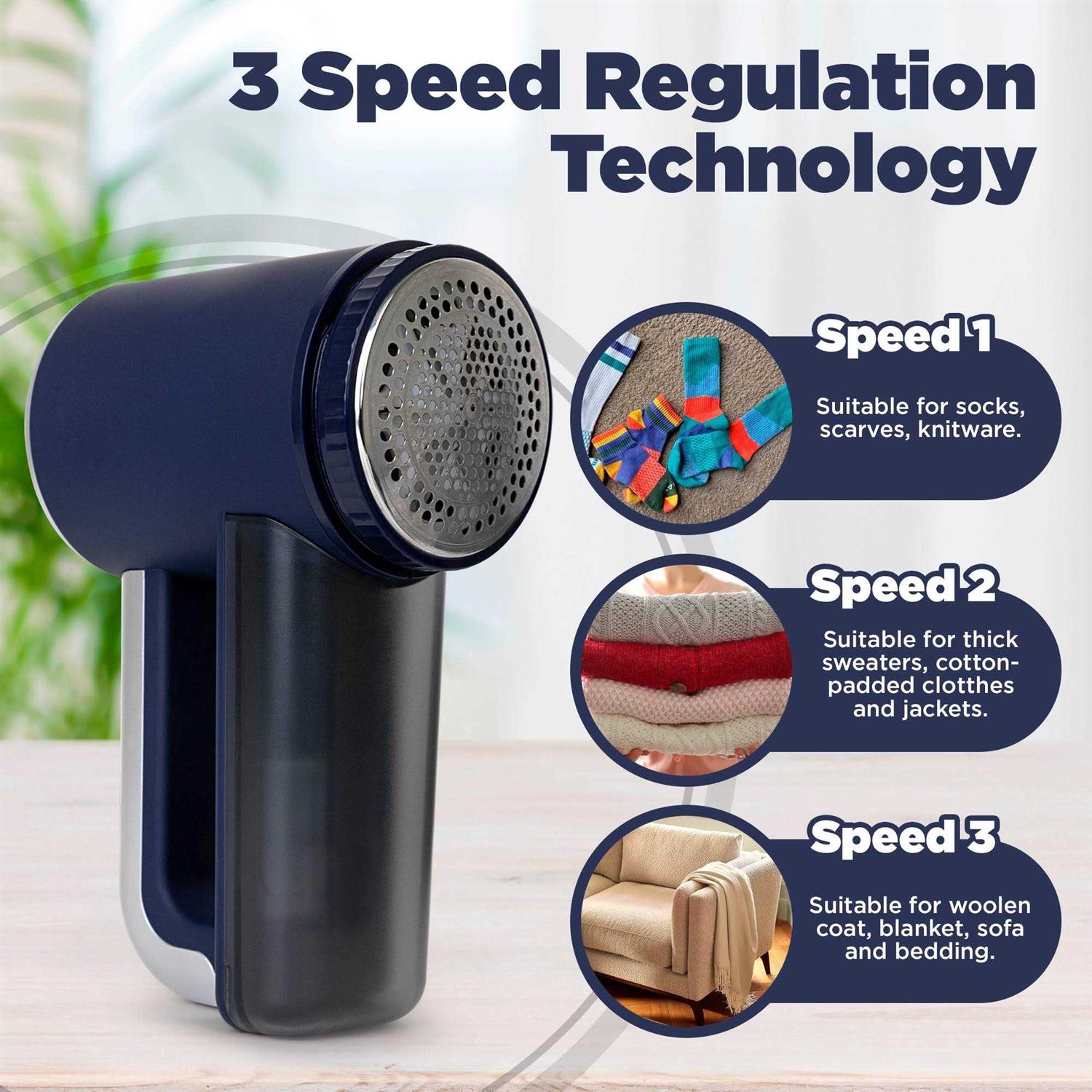 The Electrolux Rechargeable fabric shaver is a versatile and convenient device that quickly revitalizes garments. Its features include a reusable storage box, fast charging, durable blades, a powerful motor, extra blades, an LED digital display, 3-speed settings, a large lint-holder area, and a rubberized handle. With this fabric shaver, you can easily remove lint, fuzz, and pilling from different fabrics, achieving satisfying results with minimal effort. Its ergonomic design and practical features make fabric de-fuzzing a breeze, transforming grungy clothes into gorgeous ones in just a few minutes.