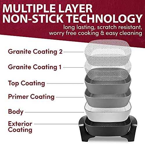 DISHWASHER SAFE and fully immersible in your sink for fast, easy clean-up upon removal of the temperature control unit. Thick cast aluminum body with Black lacquer finish resists rusting or warping for added resilience RAPID + EVEN HEAT from our fully-embedded heating element. With its Trigger-Release control probe, you can pinpoint temperatures of 200-400 F degrees and prevent hot spots and scorched food International products have separate terms, are sold from abroad and may differ from local products, including fit, age ratings, and language of product, labeling or instructions.
