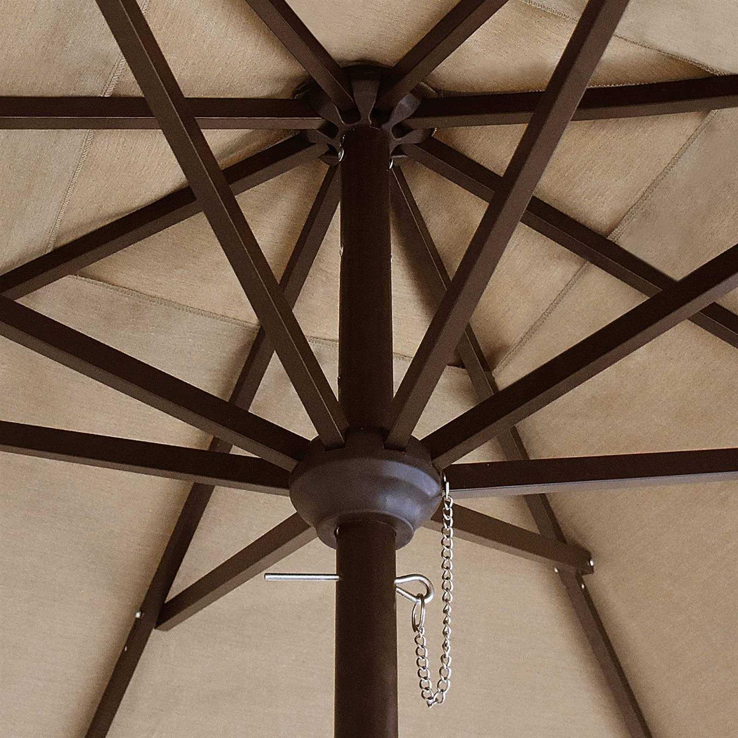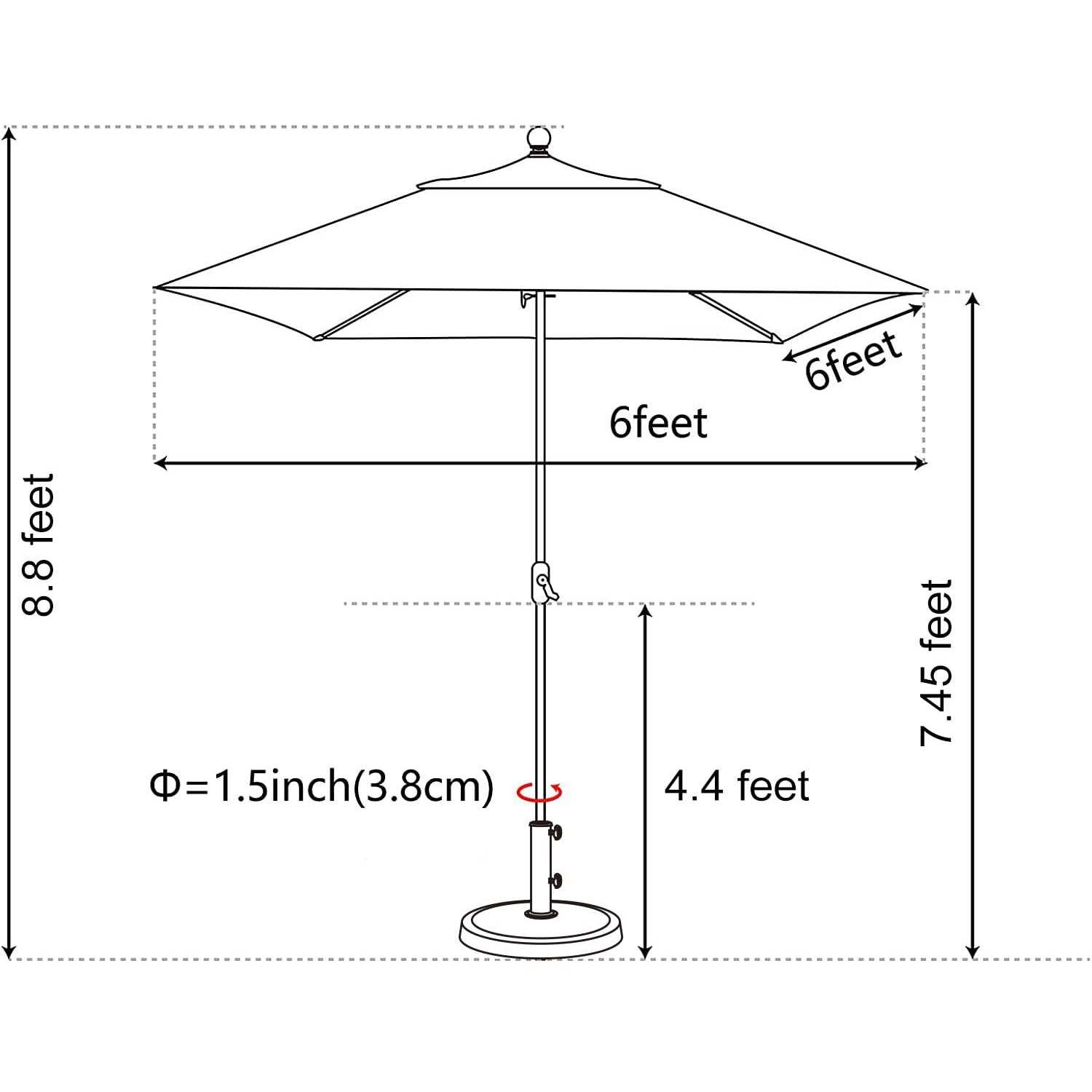 100% Non-fading Acrylic Performance Fabric: 100% solution-dyed acrylic, 10 years non-fading top, water resistance and oil resistance. Ordinary market and patio umbrella will fade in one month, while EliteShade patio umbrella is fadeproof. Sun Protection: High-quality 260 GSM impermeable fabric shows effective in heat insulation in sunlight exposure and protects the people tanning and burning. Heavy-duty Steel Umbrella Frame: EliteShade patio umbrella is 20% stronger than most of patio umbrellas in the market because of steel material. The Patio umbrella comes with 1.5 inches diameter steel pole coated with Rust Free Powder which provides stronger support than standard round poles. Crank Open System: EliteShade patio umbrella is easy to open and close by the crank handle. The handle is made of cast aluminium alloy, which possesses outstanding antioxidation property and is not easy to break. The patio umbrella base is not included. Search B07VXLFGGW, B07X24LK86, B07TYL67Q1, B09LV9534L, B0B7HSLC18, B0B7HQT51M, B08NB6QT5Y, B09B1VYJZQ for the umbrella base you might need.