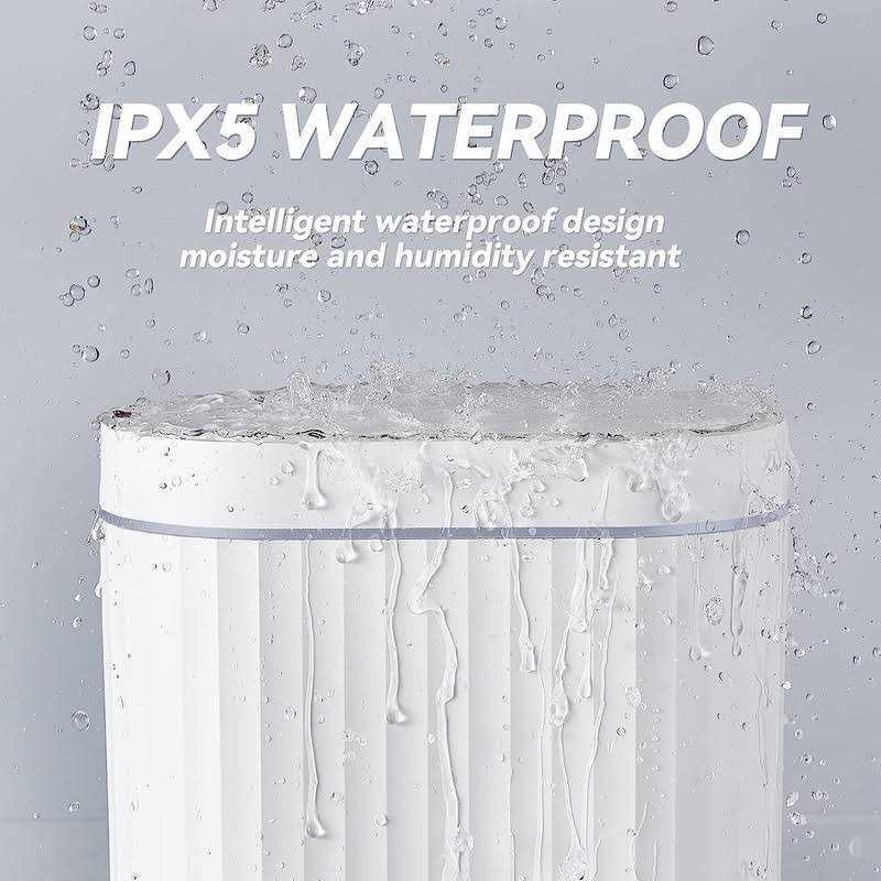 SMART SENSOR – Our fully-developed sensing technology reduces unnecessary openings and extends battery life. The lid stays open if you keep your hands above the infrared motion sensor, which improves user experience greatly. Lid closes after 5 seconds automatically if none movement is detected by sensor. Product powered by 2 AA batteries (not included). MEASUREMENT – 11”L7”W12”H, 2 Gallons, durable ABS materials. WATER-RESISTANT – Advanced IPX5 waterproof technology prevents water or humid environment from damaging the unit. Leaving none water stain on surface after rinse. STYLISH & UNIQUE DESIGN – The appearance of this product is equipped with novel wave stripes, bringing visual aesthetics along with being anti-slip. With its modern oval-shaped design, the product turns out to be great in bathroom, kitchen and other rooms while taking up less space. TRASH BAG FIX RING – The removable trash bag fixed liner supports trash bags to hold heavier waste. Simply take out the liner and put a trash bag on it to keep the trash bag hidden inside.