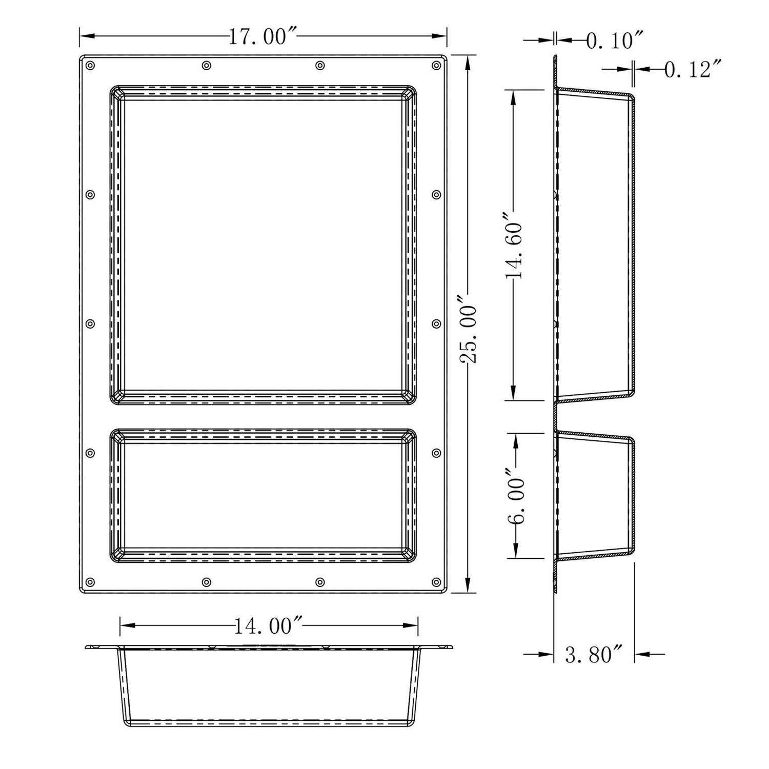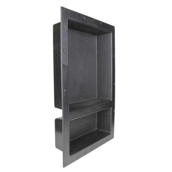 Concerned about leakage in your contractor hand fabricated niche in the shower? Look no further, here’s the solution! Our prefabricated recessed niche is ready to tile. Constructed from ABS is lightweight, but very durable material, it is virtually indestructible without the clutter and leaks. – Handmade niches typically experiences major problems in the long run, however with the prefabricated niche, it will not rust or leak and 100% guarantee waterproof and leak-proof. Tile set directly on niche surface simple and quick install vertically or horizontally depending on your design. Fits standard wall framing. Make your shower niche a design focal point and still be able to place your shower necessities. – Multiple sizes available for your bathroom design. Dimensions: Overall 25″ x 17″ x 3.75″; Inside Dimension (Shelf 1): 13.4″ x 13″ x 3.75″; Inside Dimension (Shelf 2): 5″ x 13″ x 3.75″Pre-fabricated shower niche that is fully sealed, hassle-free, quick and easy installation – insert into or snap onto cement board; makes traditional tedious shower niche installation effortless! Dual shelf design that works best for larger shower area – great for couples and families – Constructed with light weight yet durable ABS material, strong bond with polymer modified thin-set mortar, highly resistant to corrosive chemicals and physical impacts – Can be install vertically or horizontally according to your bathroom design and needs, place it any ways you like!. Color: Black.