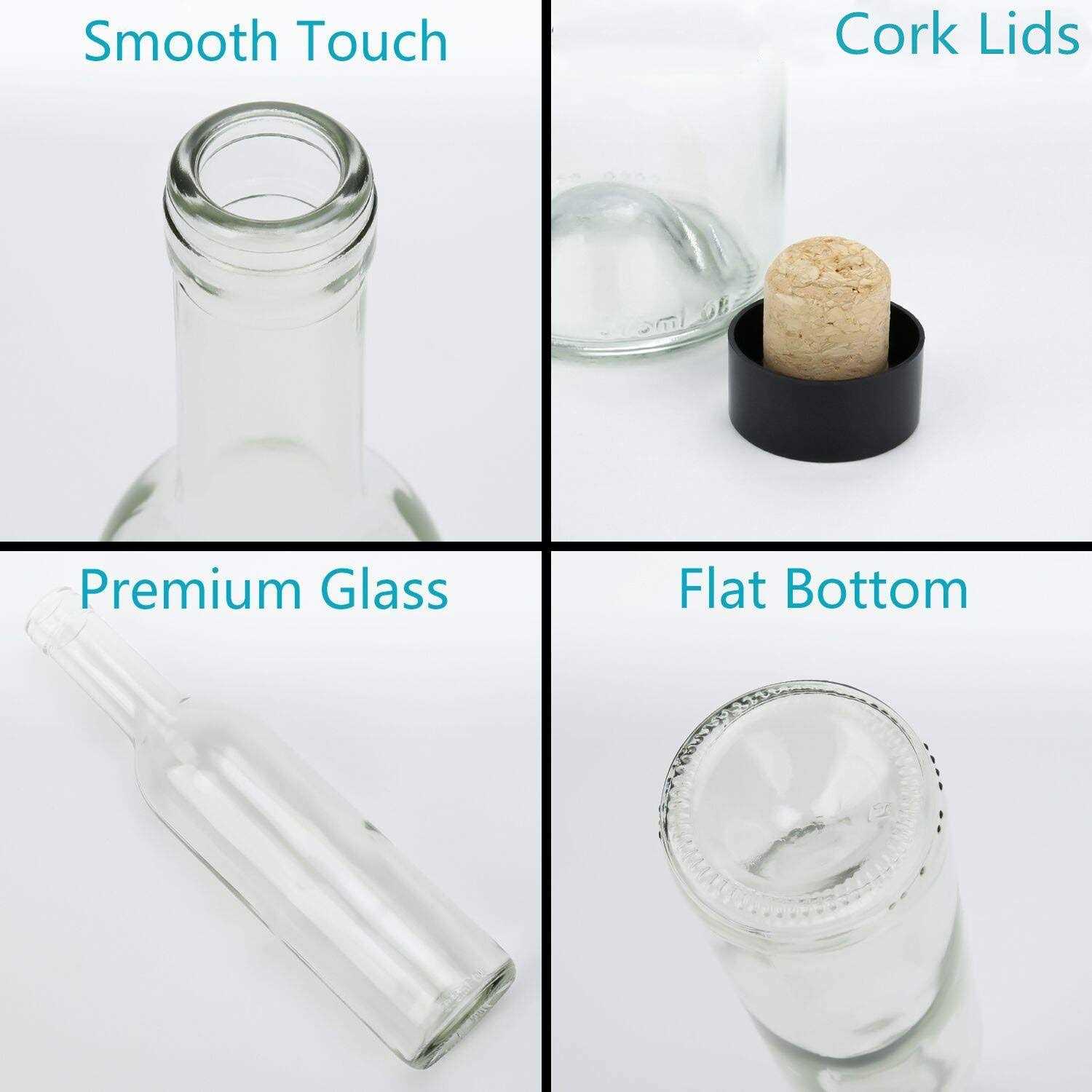 Encheng 12 oz Glass Bottles with Cork Lids,Home Brewing Bottles Juicing Bottles with Caps Shrink Capsules,Clear Beveage Bottles for Sparkling Wine