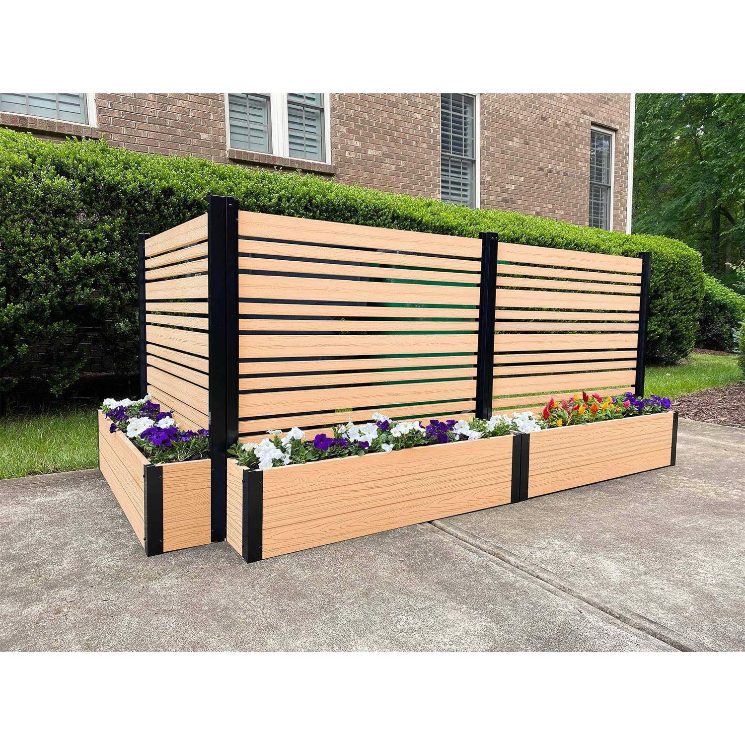 Enclo Privacy Screens EC18006 4ft H x 4ft W x 1ft L Florence Freestanding Woodtek Cedar Color Vinyl Privacy Screen and Planter Box Kit