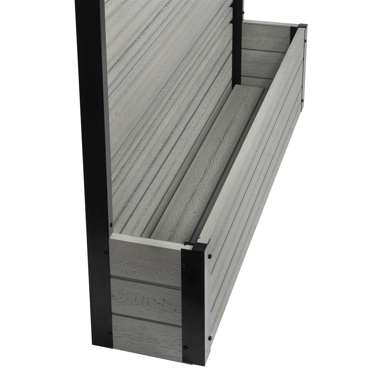 Enclo Privacy Screens Florence 3.7 ft. x 3.8 ft. x 1 ft. Ash Freestanding Woodtek Vinyl Privacy Screen and Planter Box Kit, Grey