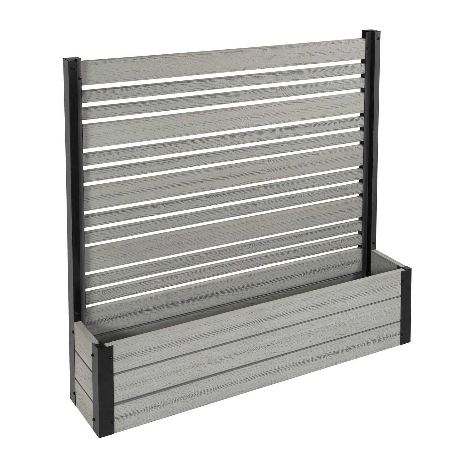 Become the envy of your neighborhood with the Florence Freestanding WoodTek Vinyl Privacy Screen and Planter Box Kit! You will receive unassembled materials for 1 screen with planter box. Functionality meets sophistication as you conceal unsightly yard items while growing beautiful plants and flowers. Designed using our state of the art WoodTek technology, this slatted privacy screen and planter box is made of weather resistant PVC that gives off the appearance of wood and is easy to maintain and clean since it is made of vinyl. The EC18007 comes in a stylish ash color and is perfect for hiding garbage bins, air conditioning units, childrens play toys, and so much more! Have a deck or patio? This is a great decorative piece that will add value and beauty to your outdoor space. This privacy screen and planter box is freestanding which means you dont have to worry about digging up your yard or pouring concrete! Each box contains one screen and planter box that assembles in approximately 45 minutes. The assembled unit (privacy screen and planter box) measures 44 in height by 46 in width by 9 long. Multiple units can be purchased to create a picturesque enclosure for your deck, patio, or other outdoor space.