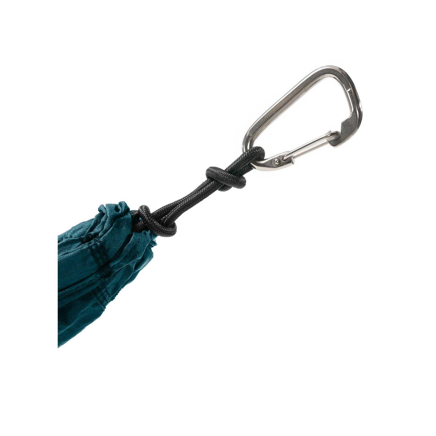 - Spacious 9′ hammock body with integrated stuff sackStainless steel carabiners quickly and safely connect to included hammock straps