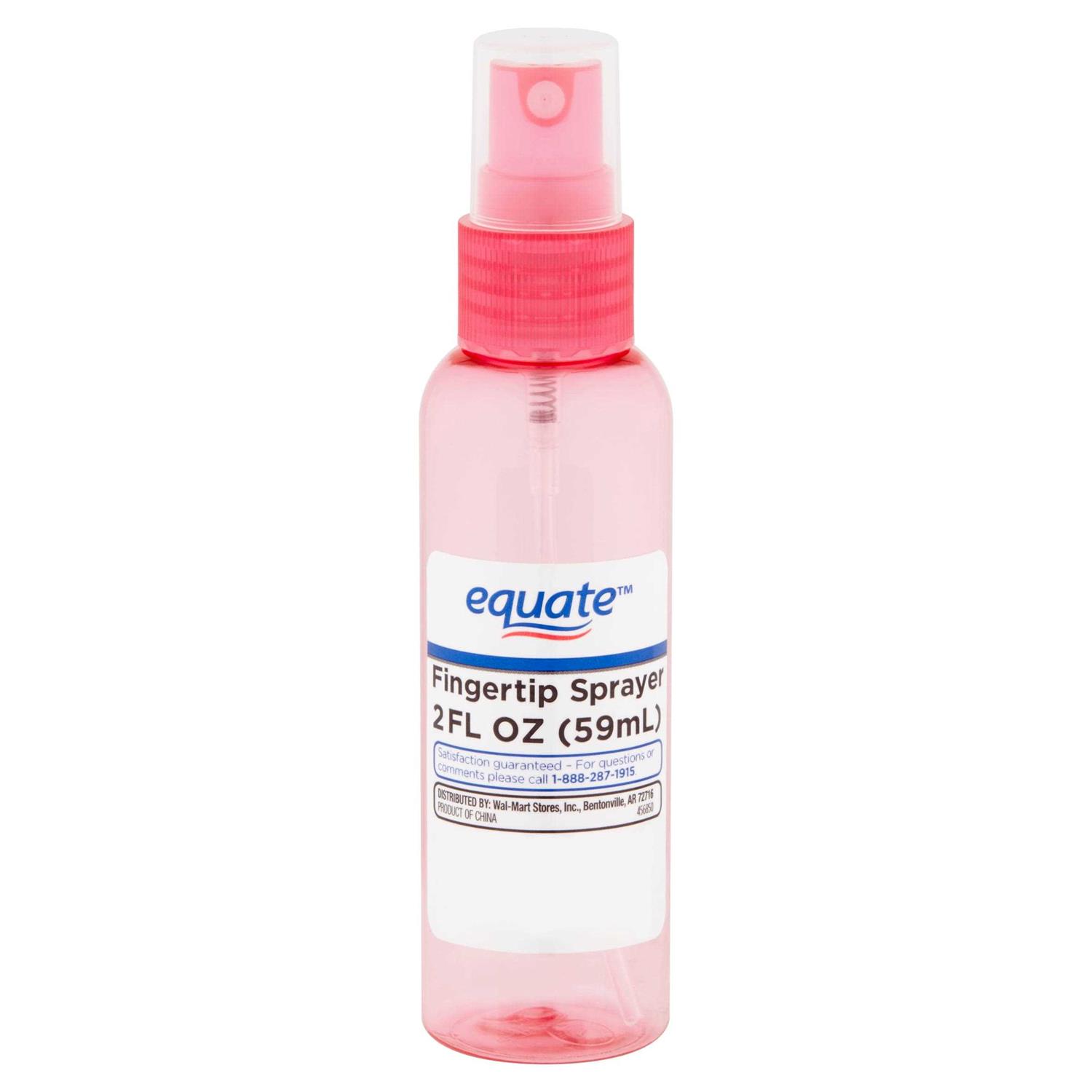Equate 2 fl oz Fingertip Sprayer is a convenient travel sized plastic spray container that can be carried in your purse or luggage while on the go. This sprayer lets you bring your preferred misting solution, fragrance, hairspray, water and more on board any vehicle. Finger actuated with an over-cap that helps keeps the pump from accidentally spraying in luggage or while stored, it can hold almost any liquid you would want at your fingertips. Great for hair and fragrance sprays, and sanitizers. Ideal for natural bug sprays, cleaning solutions, plant sprays, and any soluble thin liquids. Use in the kitchen, bathroom, laundry room and beauty salon, at home or on the road. Durable, easy to wash and reusable, Equate 2 fl oz Fingertip Sprayer is an essential travel accessory.