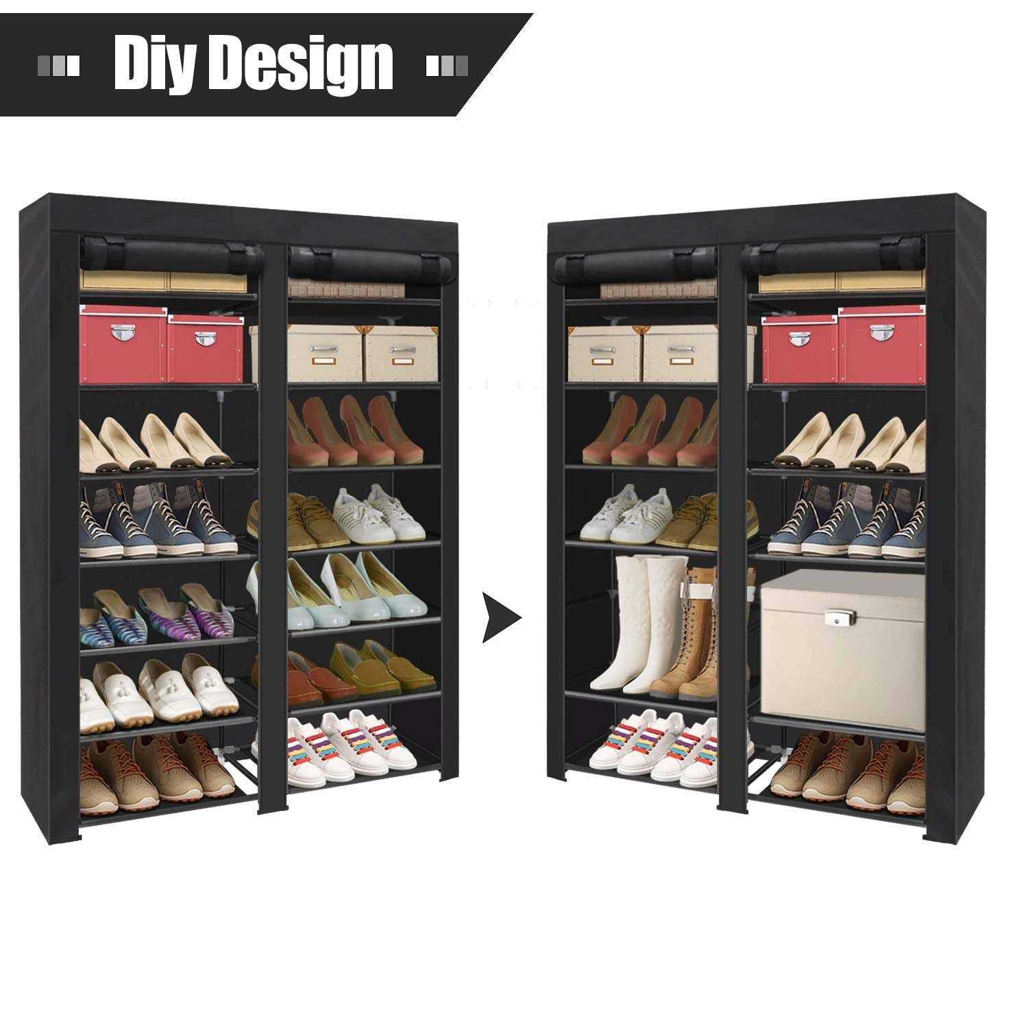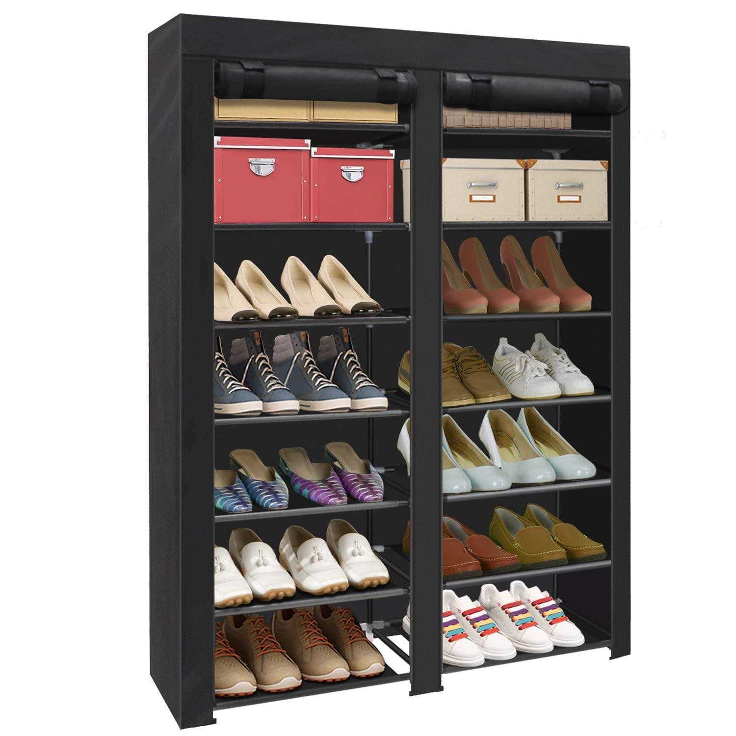 Erone Shoe Rack Storage Organizer , 28 Pairs Portable Double Row with Nonwoven Fabric Cover Shoe Rack Cabinet for Closet (Black)