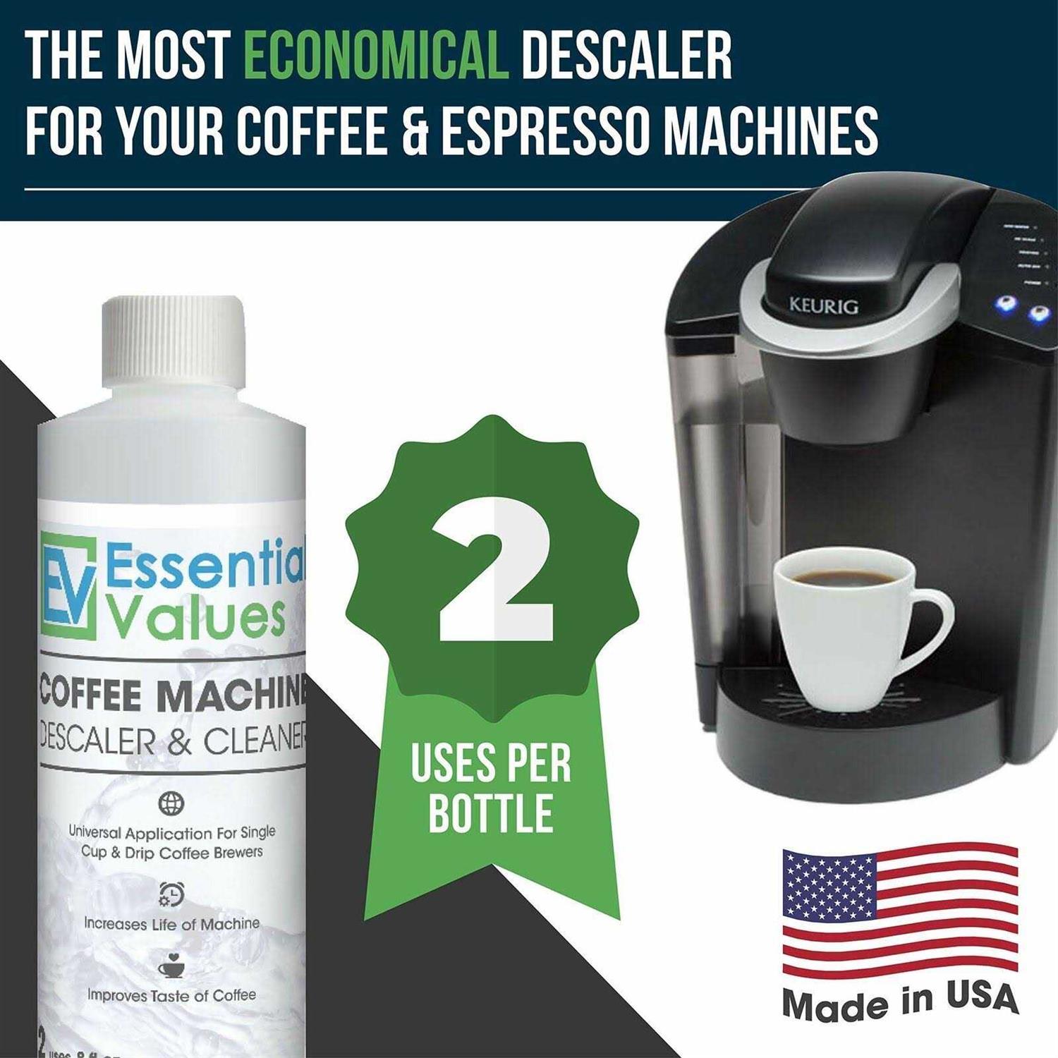 Powerful amp Versatile Our coffee descaler and cleaner isnt just another Keurig descaling solution its a non-toxic, multipurpose solution meant to remove mineral and limescale deposits on a wide variety of machines. It deeply penetrates oil and can work as a decalcifier for other home appliances. When it comes to coffee maker cleaner and coffee bar accessories, Essential Values coffee descaler is a no-brainer. Powerful amp Versatile Our coffee descaler and cleaner isnt just another Keurig descaling solution its a non-toxic, multipurpose solution meant to remove mineral and limescale deposits on a wide variety of machines. It deeply penetrates oil and can work as a decalcifier for other home appliances. When it comes to coffee maker cleaner and coffee bar accessories, Essential Values coffee descaler is a no-brainer. Powerful amp Versatile Our coffee descaler and cleaner isnt just another Keurig descaling solution its a non-toxic, multipurpose solution meant to remove mineral and limescale deposits on a wide variety of machines. It deeply penetrates oil and can work as a decalcifier for other home appliances. When it comes to coffee maker cleaner and coffee bar accessories, Essential Values coffee descaler is a no-brainer.