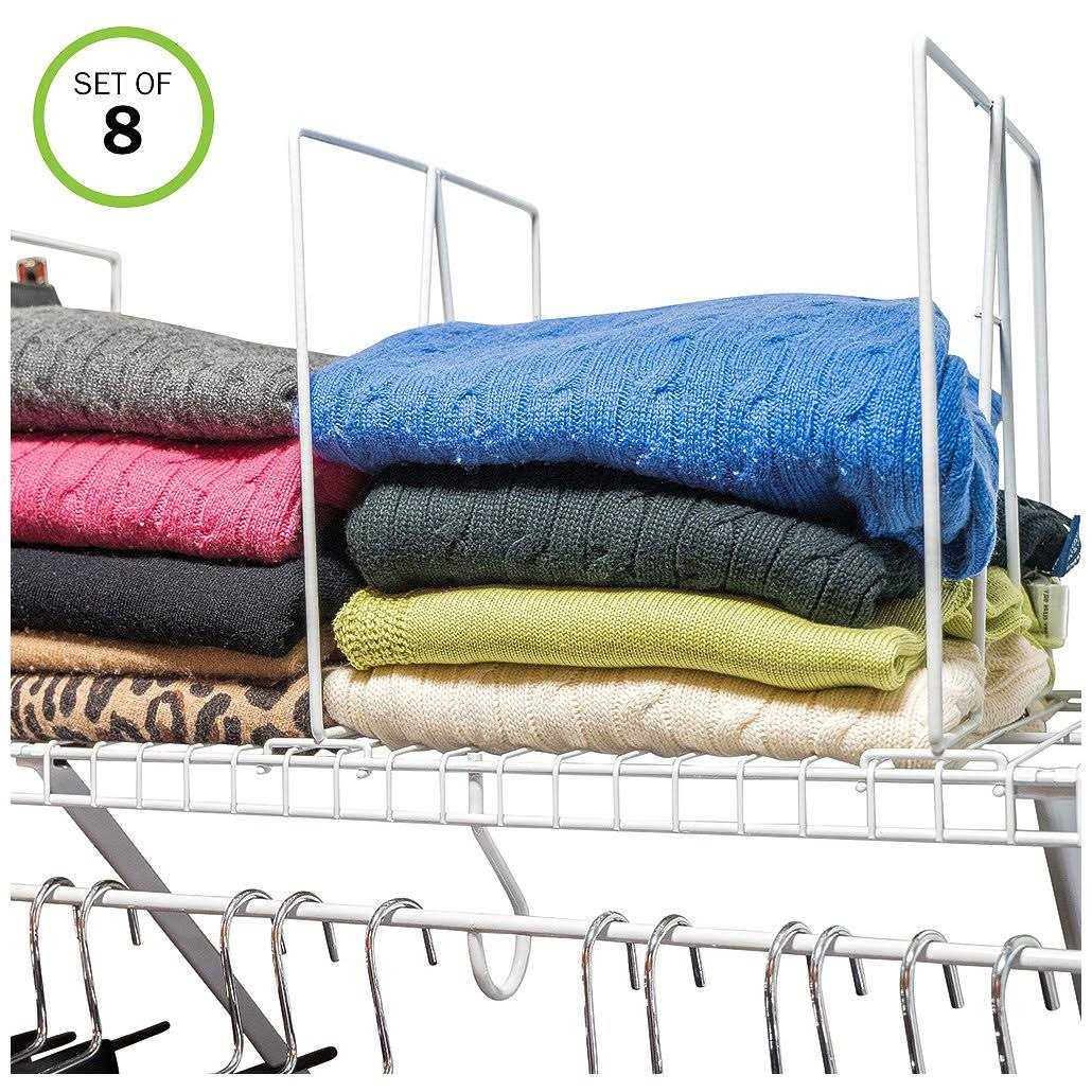 Evelots 5996 New and Improved Set of 8 Closet Shelf Dividers for Wire Shelving, White
