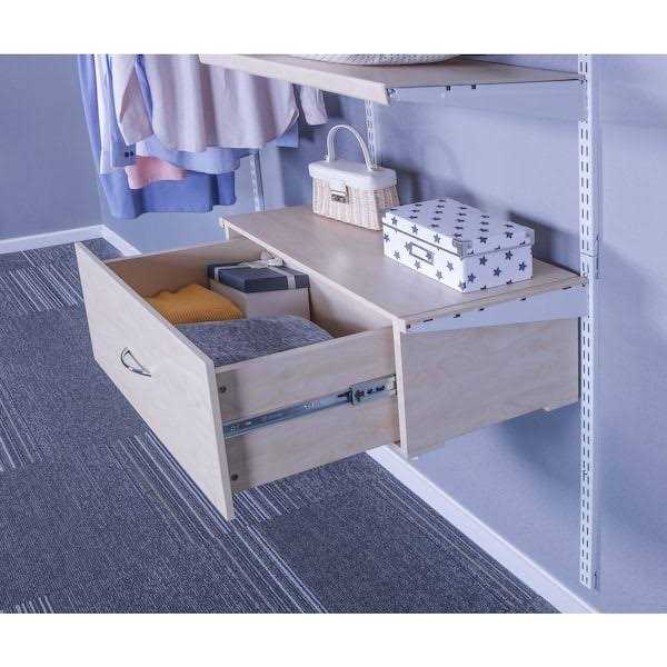 - Protect your shelving and glassware with this Everbilt Birch Wood Closet Organization Shelving Unit Large Drawer Kit.