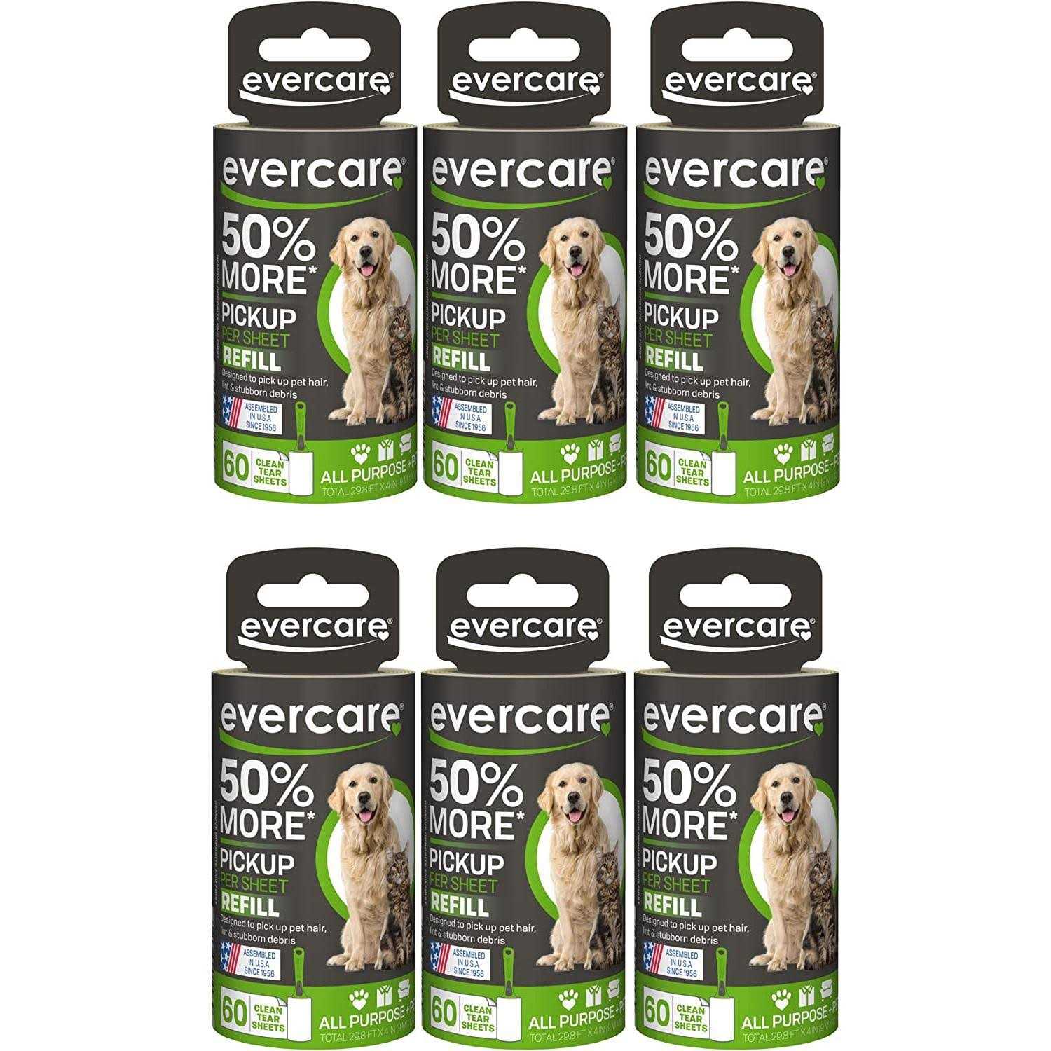 Evercare All Purpose Pet Hair Lint Roller Refills, 60 Sheets,6 Pack