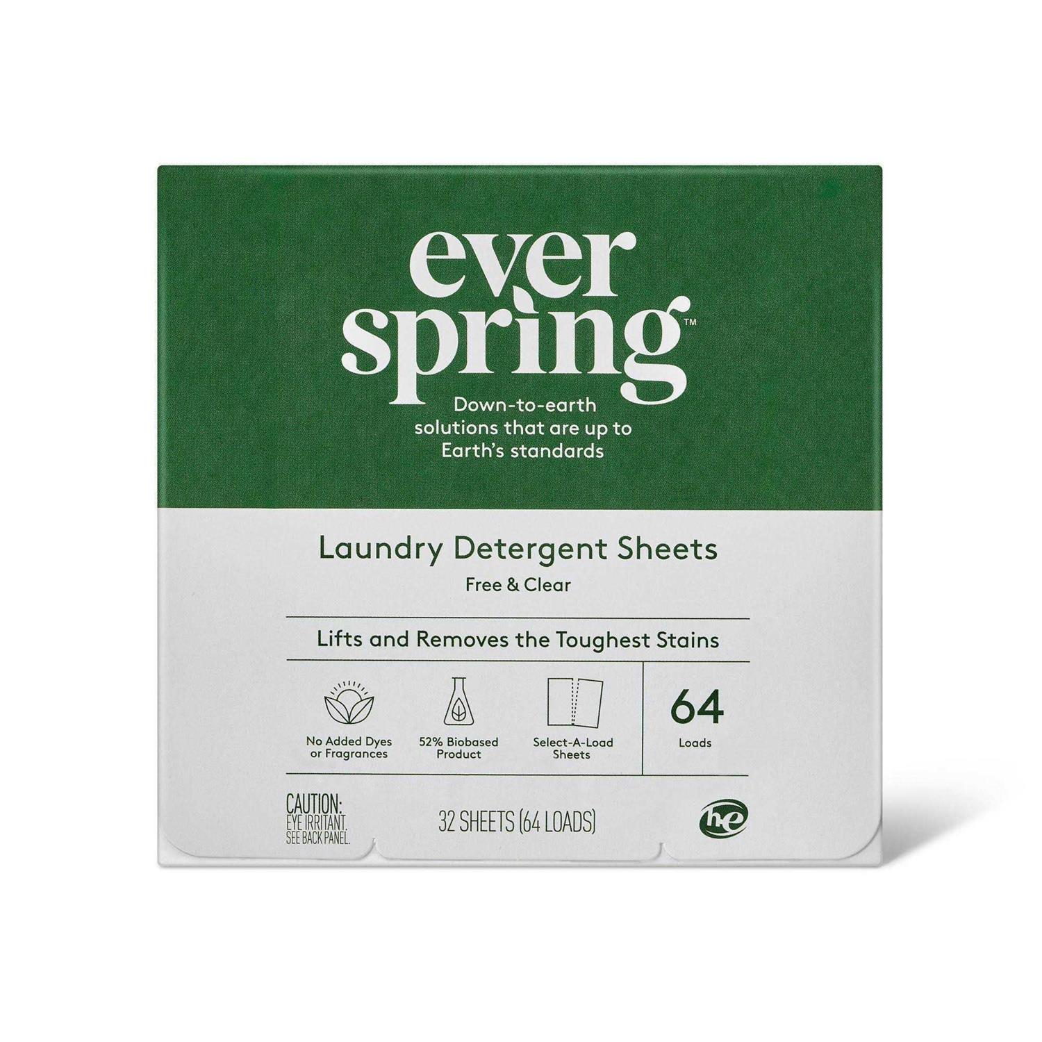 Free & Clear Laundry Detergent Sheets – 64 Loads – Everspring