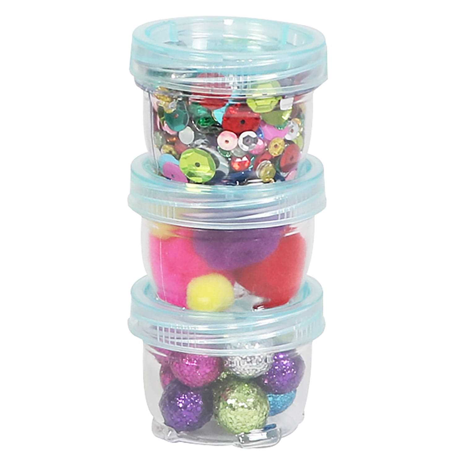 Everything Mary 3PK Stacking Jars. 4.5 x 2.13 x 2.13 Inches. 3 wonderfully sized interlocking bead & craft storage containers. Plastic containers with screw lids are easily screws together and keep items separate and organized, long-lasting and resistant to wear. Suitable for storing small parts like DIY diamond rhinestones, beads, glitters, nail crystals, jewelry, necklaces, rings and other small crafts. 3 piece large top stackable jars helps to keep multiple beads organized, reducing clutter and conserving space.