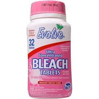Evolve Bleach Tablets bring you the Evolve Bleach power you love in easy-to-use solid form. Theyre water-activated, so they only start working when you want them to. The solid form means “No Spills, No Splash, No Mess”, so you never need to use liquid bleach again! The solid form means no spilling or splashing. Evolve Bleach Tablets are uniquely created for water activation, giving you and your family added control. When the Tablets are dry they are essentially in a non-reactive state. When combined with water, the tablets dissolve, transforming to make a powerful yet gentle bleach solution. Simply drop Evolve Bleach Tablets into a bucket, sink or toilet and they will automatically activate. Tablets dissolve completely in the washing machine during the wash, and work with either hot or cold water. Not only that, Evolve Bleach Tablet containers are recyclable, making them a lighter load on the environment.