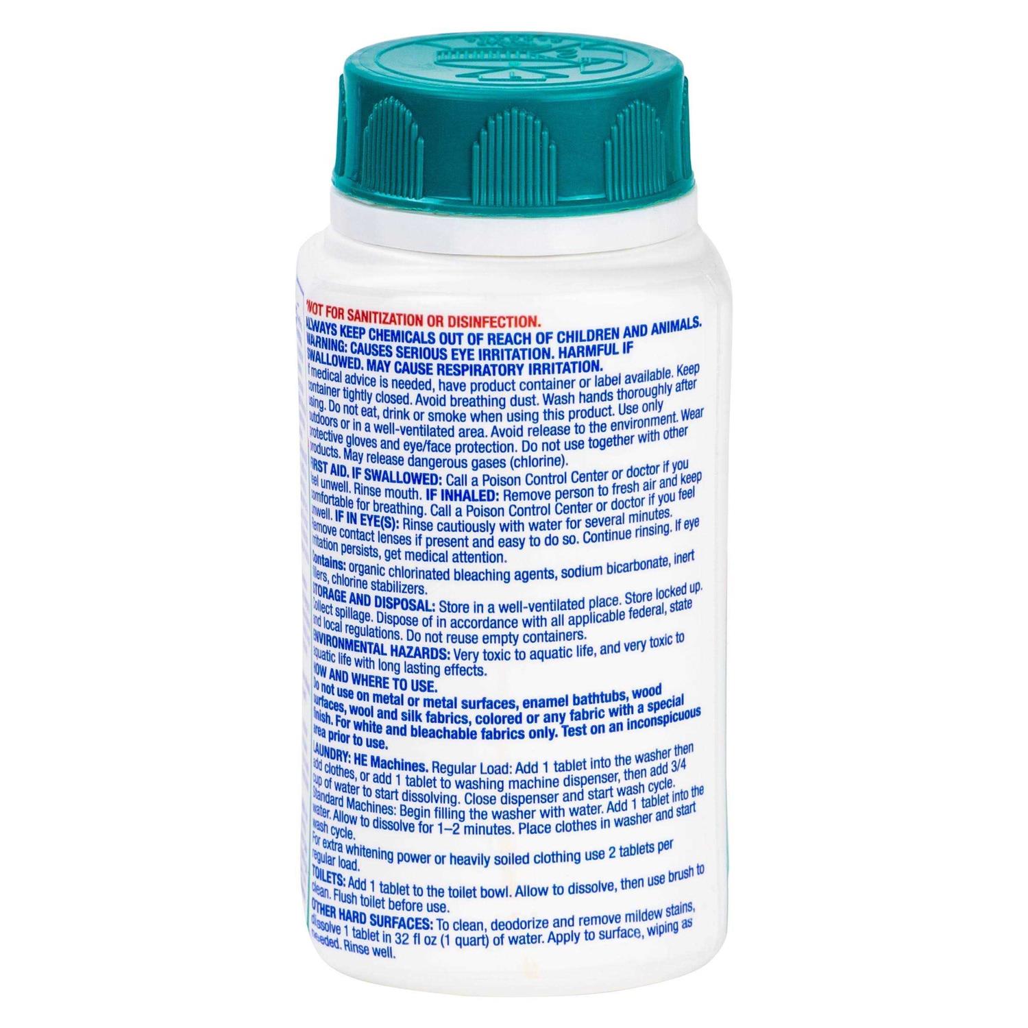 - One tablet mixed with 1/2 cup of water is equal to 1/2 cup of standard regular liquid bleach