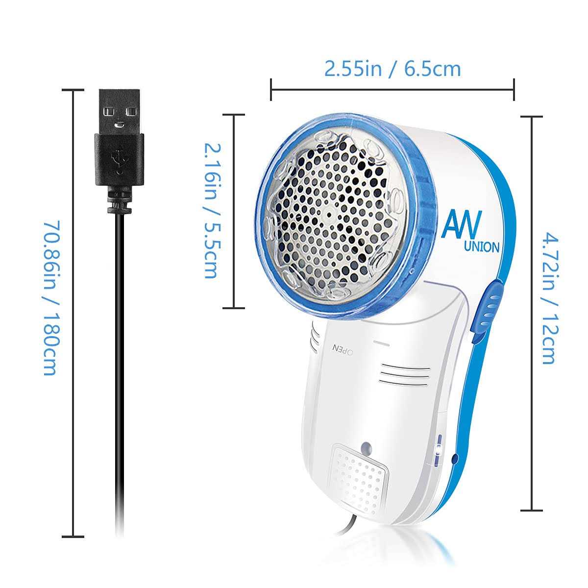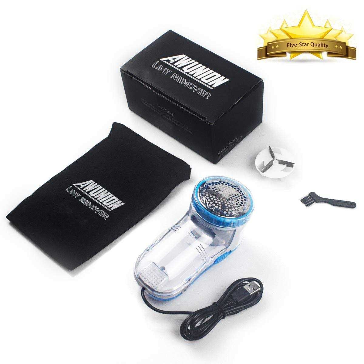 AW Union Fabric Shaver Lint Remover, USB Powered Lint Shaver Efficiently Remove Lints from Fabrics, Clothes, Upholstery – 70″ Cord – 1 Replacement