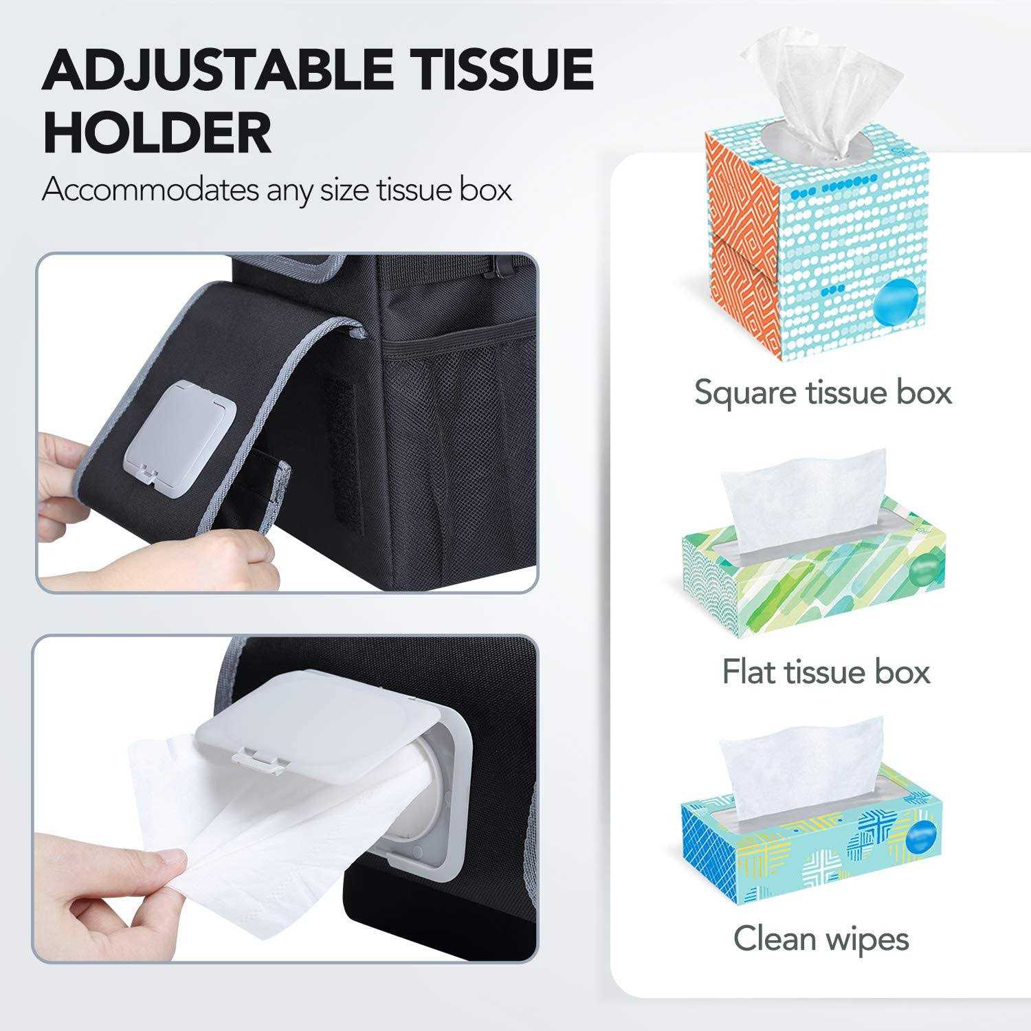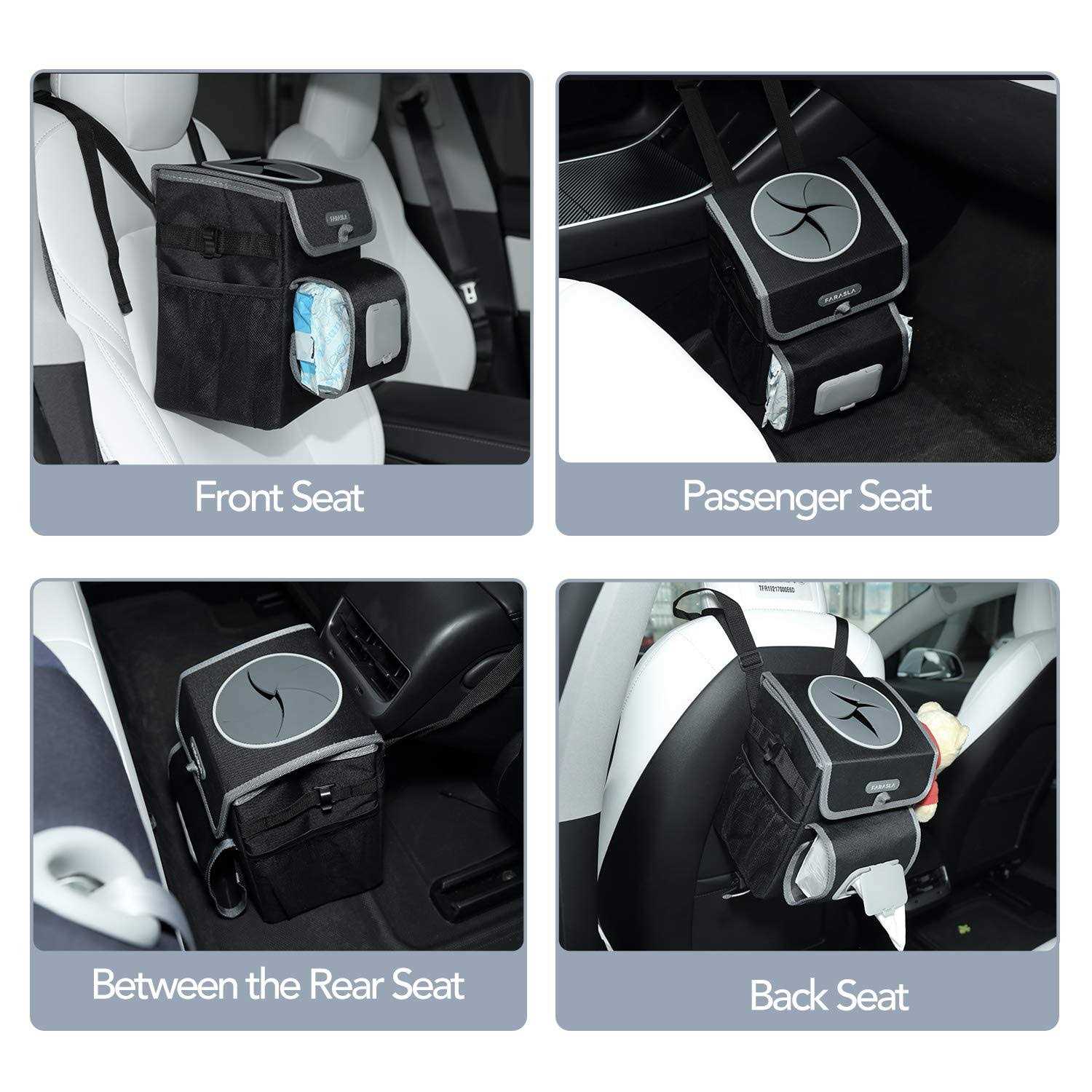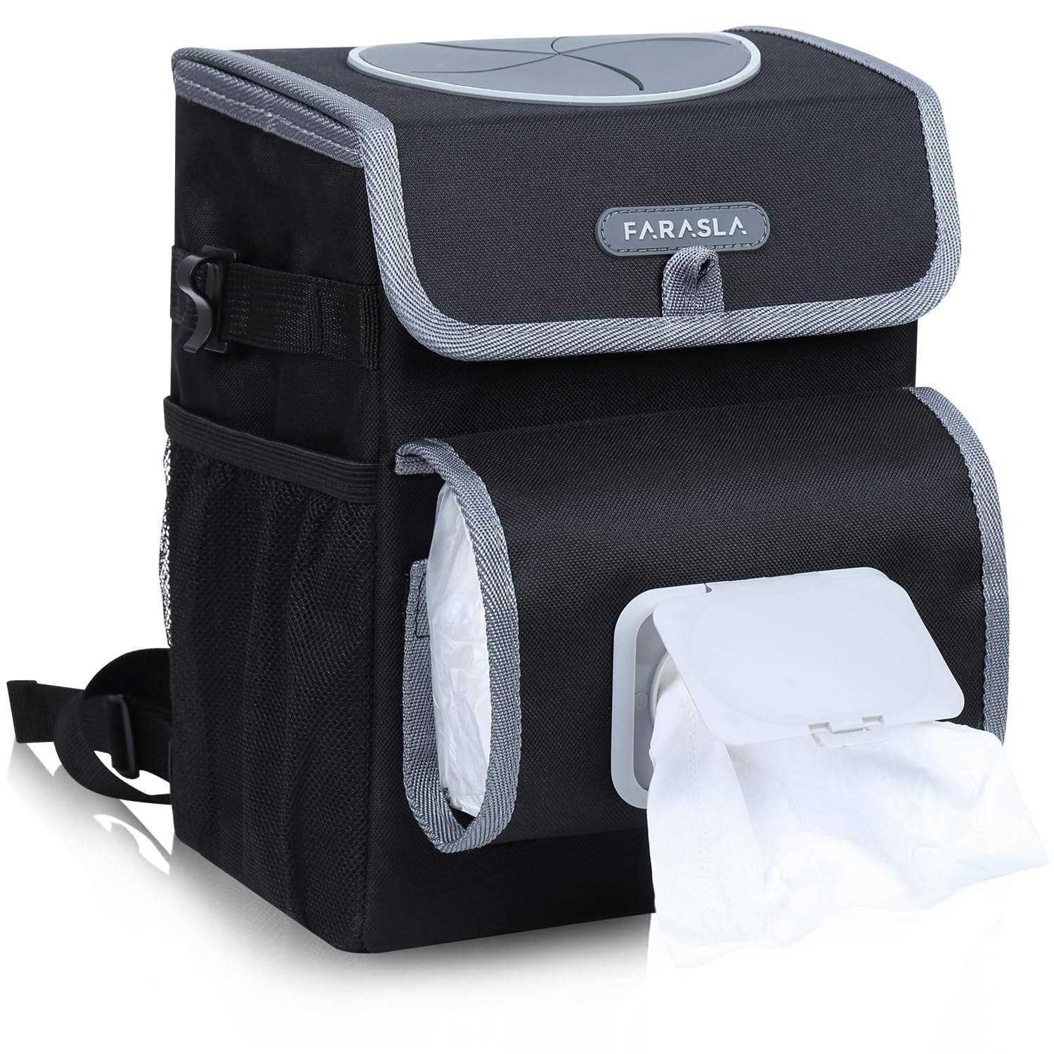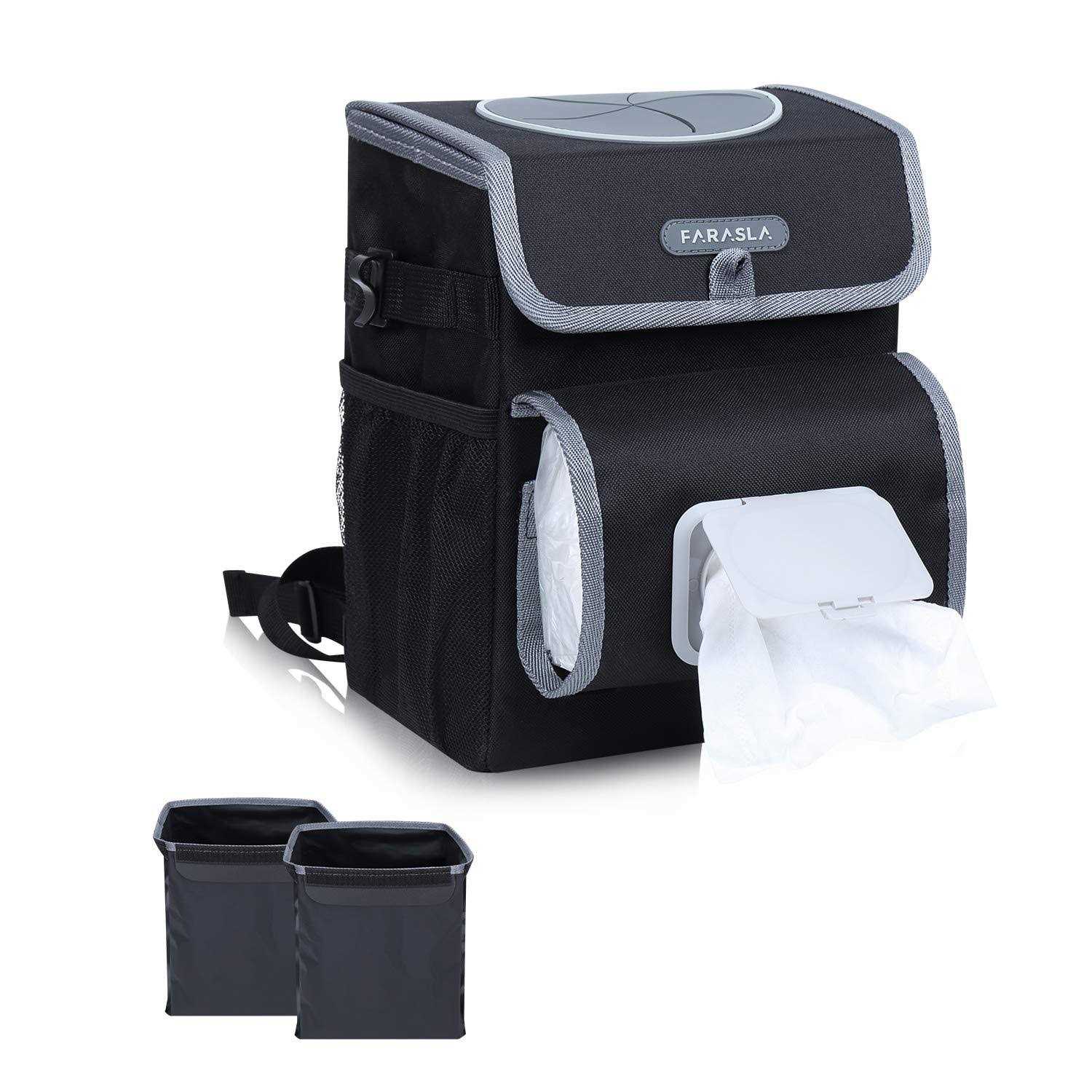 Farasla All-in-One Car Trash Can with 2 Removable Leakproof Interior Liners Adjustable Tissue Holder & Straps