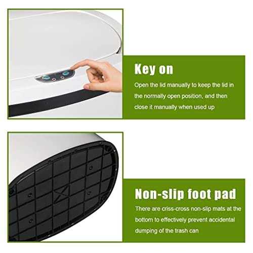 Subverting the traditional way of throwing garbage, our auto-sensing non-touch trash can automatically sense the approach of human hands or garbage and automatically open the lid. After the garbage is thrown in, the lid is automatically closed to isolate odors. Durable stainless steel material and appearance not only good looking but also easy to maintain and clean, won’t leave any fingerprint, this garbage bin is waterproof and mute, which does not limit its applicable use occasion. Without a complex design, this waste bin is very easy to use, after installing the batteries, you only need to press the switch to “On”, and if you want to change the garbage bag, you only need to lift the top part, the capability will match your daily need.