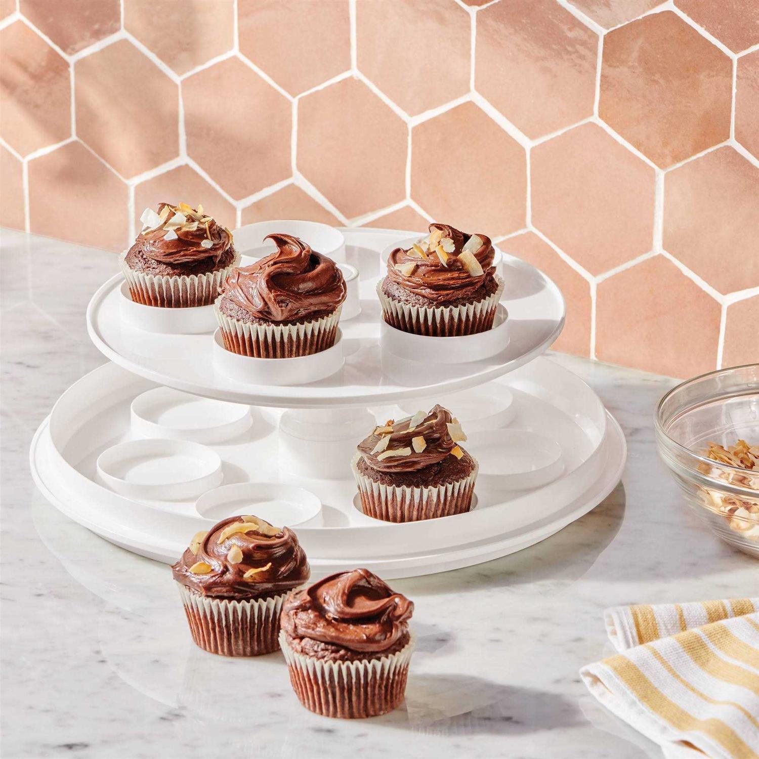 This Round Cake Carrier from Figmint helps you store, carry and display cakes, cupcakes, pies and more. Made from BPA-free plastic, this carrier can hold up to twelve cupcakes as is, and the top tier can also be twisted off and the base flipped to store cakes or pies. The transparent lid lets you clearly see the contents and helps keep them secured, and the sturdy top handle makes it easy to carry. Figmint : Mixing up a taste of adventure everyday.