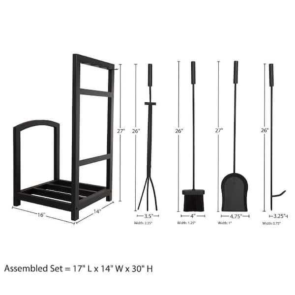 Fireplace Tool Set and Log Rack – 5-Piece Set (Matte Black)